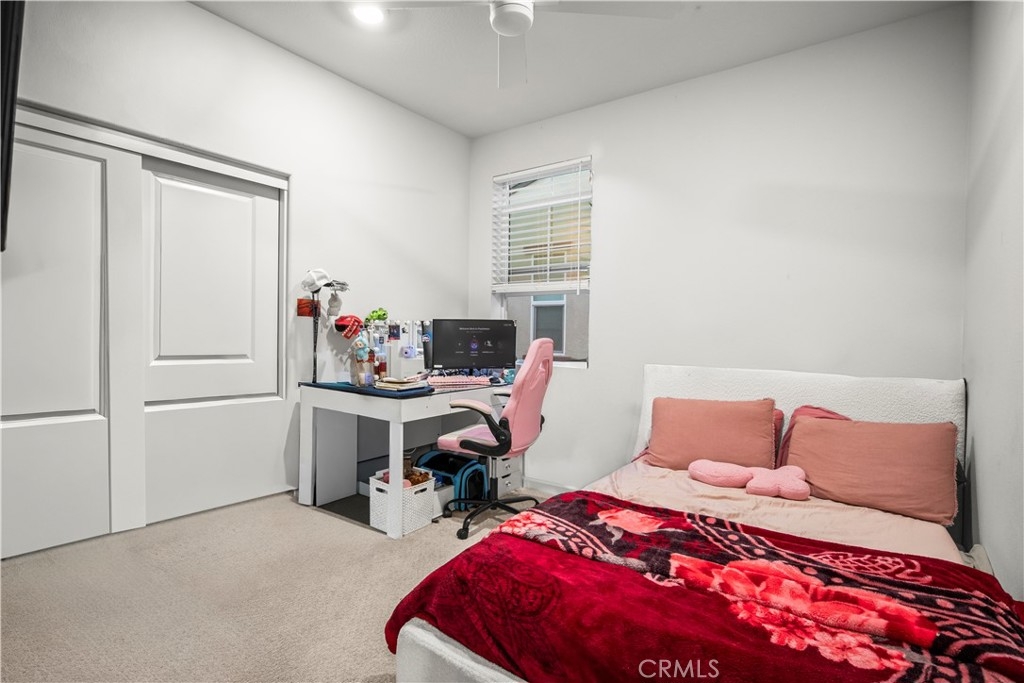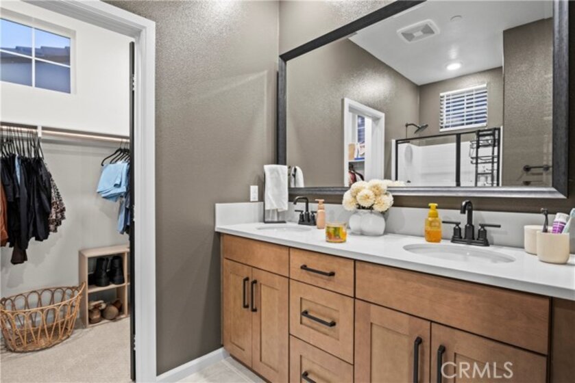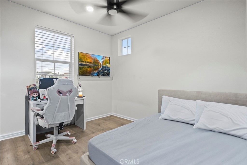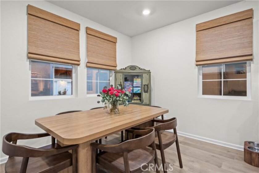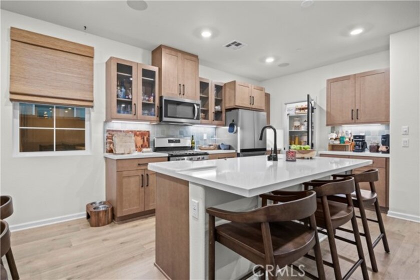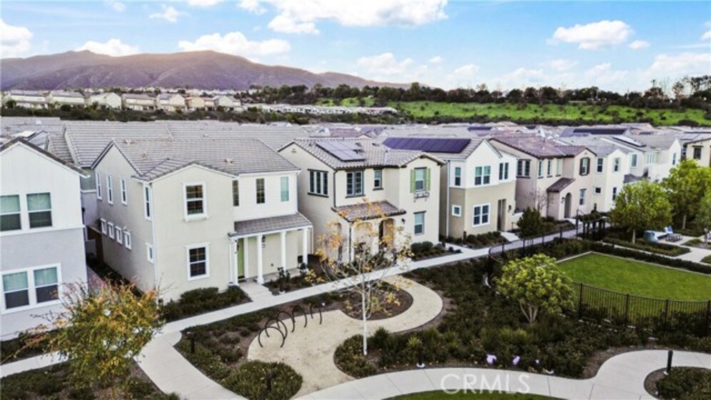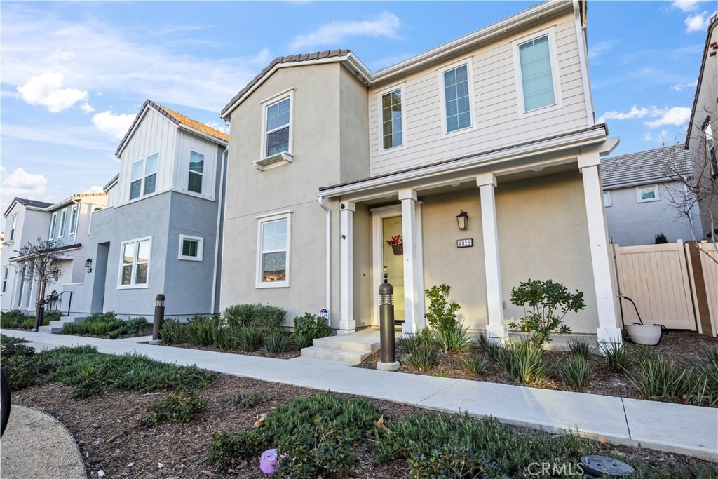Welcome to 4029 Summer Way, a beautifully designed Contemporary Traditional-style former model home in the desirable Bedford community of Corona. Built in 2024, this detached condominium offers the low-maintenance lifestyle of condo living with the privacy, presence, and curb appeal of a standalone home no shared walls and a front-facing orientation perfect for seasonal decorating. This 4-bedroom, 3-bathroom home spans 1,776 sq ft and is loaded with upgrades throughout. Features include a fully paid solar system, RevWood Plus laminate flooring in Vintage Villa Oak (pet- and water-resistant), custom shiplap accent walls, upgraded cabinetry, quartz countertops, Whirlpool stainless steel appliances, designer hardware, custom window coverings, a rare walk-in pantry, and a main-level bedroom with full bath ideal for guests or multigenerational living. The epoxy-coated garage includes built-in overhead storage and a dedicated EV charging plug-in. Across the street, enjoy resort-style amenities including multiple pools, a modern fitness center, a dog wash station, and two separate dog parks for large and small breeds. Located minutes from shopping, dining, parks, and freeway access, this fully upgraded, move-in ready home offers an exceptional lifestyle in one of Corona’s most vibrant and pet-friendly communities.