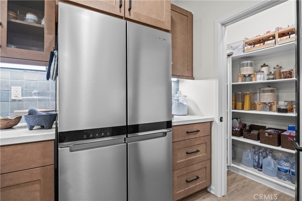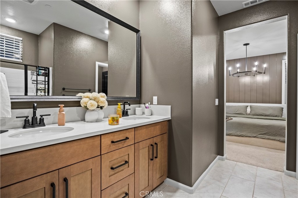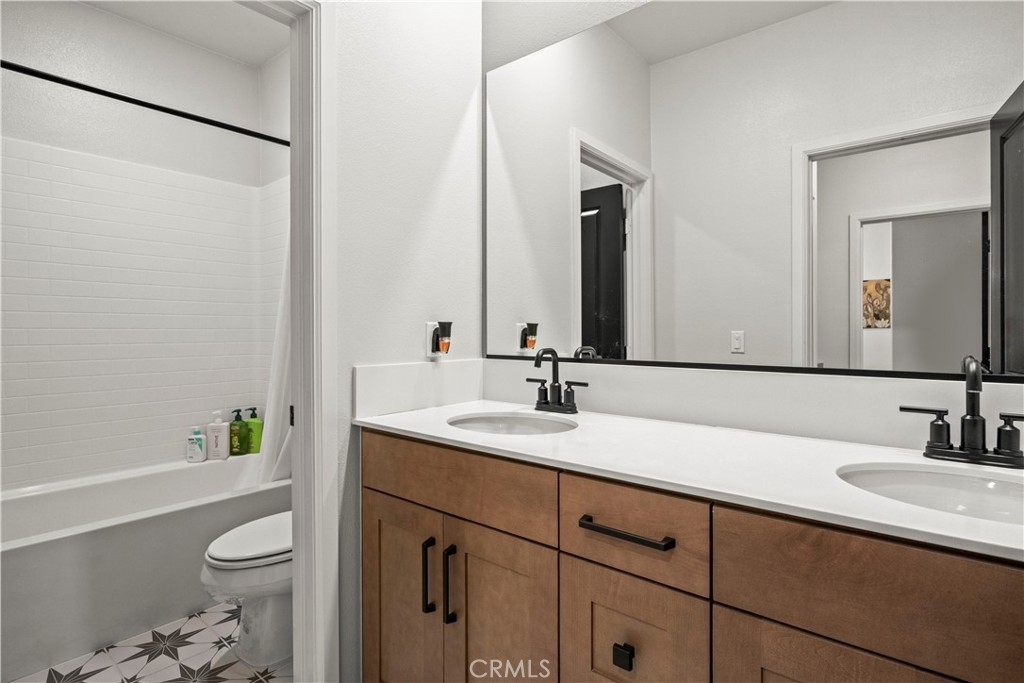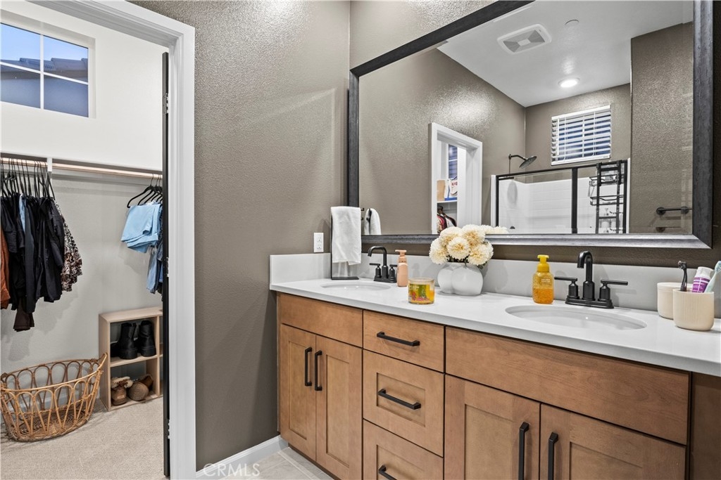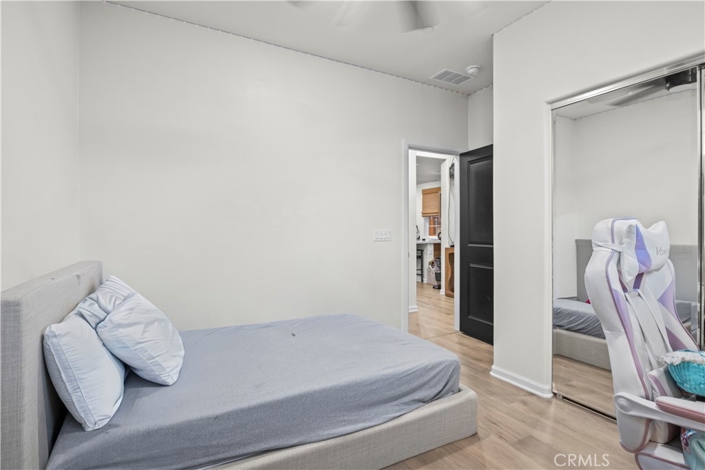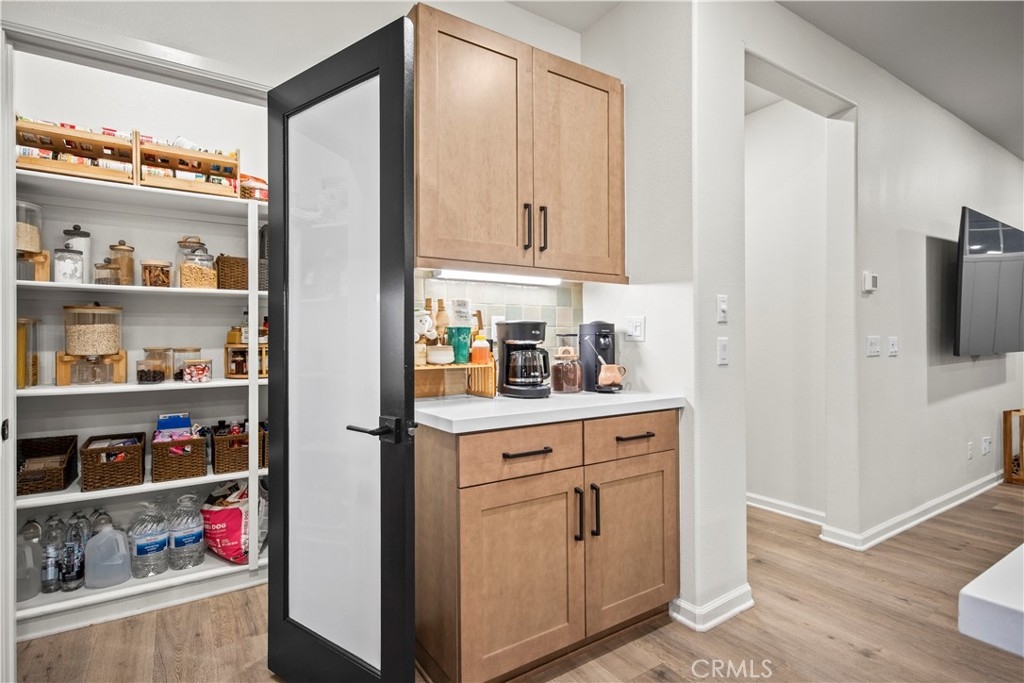 Welcome to 4029 Summer Way, a beautifully designed Contemporary Traditional-style former model home in the desirable Bedford community of Corona. Built in 2024, this detached condominium offers the low-maintenance lifestyle of condo living with the privacy, presence, and curb appeal of a standalone home no shared walls and a front-facing orientation perfect for seasonal decorating. This 4-bedroom, 3-bathroom home spans 1,776 sq ft and is loaded with upgrades throughout. Features include a fully paid solar system, RevWood Plus laminate flooring in Vintage Villa Oak (pet- and water-resistant), custom shiplap accent walls, upgraded cabinetry, quartz countertops, Whirlpool stainless steel appliances, designer hardware, custom window coverings, a rare walk-in pantry, and a main-level bedroom with full bath ideal for guests or multigenerational living. The epoxy-coated garage includes built-in overhead storage and a dedicated EV charging plug-in. Across the street, enjoy resort-style amenities including multiple pools, a modern fitness center, a dog wash station, and two separate dog parks for large and small breeds. Located minutes from shopping, dining, parks, and freeway access, this fully upgraded, move-in ready home offers an exceptional lifestyle in one of Corona’s most vibrant and pet-friendly communities.