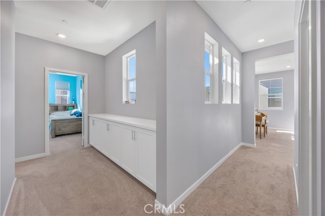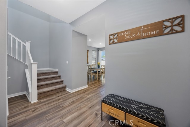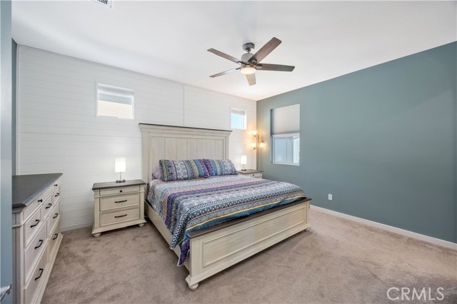 TURNKEY MODERN FARMHOUSE STYLE | 4 BED + LOFT | DOWNSTAIRS BED + BATHROOM | LOW-MAINTENANCE BACKYARD Located in the highly desirable Bedford community of Corona, this gorgeous original-owner home offers understated luxury throughout. The bright and open floor plan begins with a spacious foyer. The gourmet kitchen features a large center island with an abundance of counter space, quartz countertops, subway tile backsplash, white shaker style cabinets, GE stainless steel appliances and farmhouse sink. The open living and dining areas are perfect for entertaining, with a custom built-in sideboard for extra counter space, luxury vinyl plank flooring, recessed lighting and high ceilings. The main floor also features a private bedroom and bathroom, perfect for guests. The large primary suite features high ceilings, custom window shades, ceiling fan, walk-in closet, large bath with a dual sink vanity, shower and separate water closet. A large upstairs loft offers plenty of additional living space. Two additional bedrooms share a large full bath with dual sink vanity and a private tub/shower area. Also upstairs you'll find a separate laundry room offering side-by-side laundry and storage shelf. Additional highlights include a 2-car garage with epoxy floors, dual zone central air/heating, and energy-efficient features such as an owned 10 panel 4.05 KW solar system with 26kWh of battery backup, tankless water heater and reverse osmosis water filtration system. Enjoy access to all the Bedford community resort-style amenities, including; three pools and spa, clubhouses, gym, dog park, walking trails, fire pits, indoor/outdoor entertaining and kitchens, sports courts, and more! Centrally located near top-rated schools, parks, recreation, shopping, dining, and easy access to the 91fwy, 15fwy, and toll roads. This is more than a home, it’s a lifestyle.