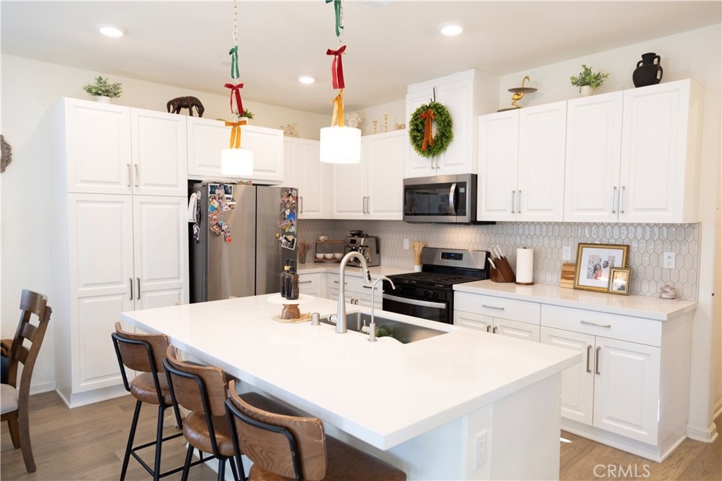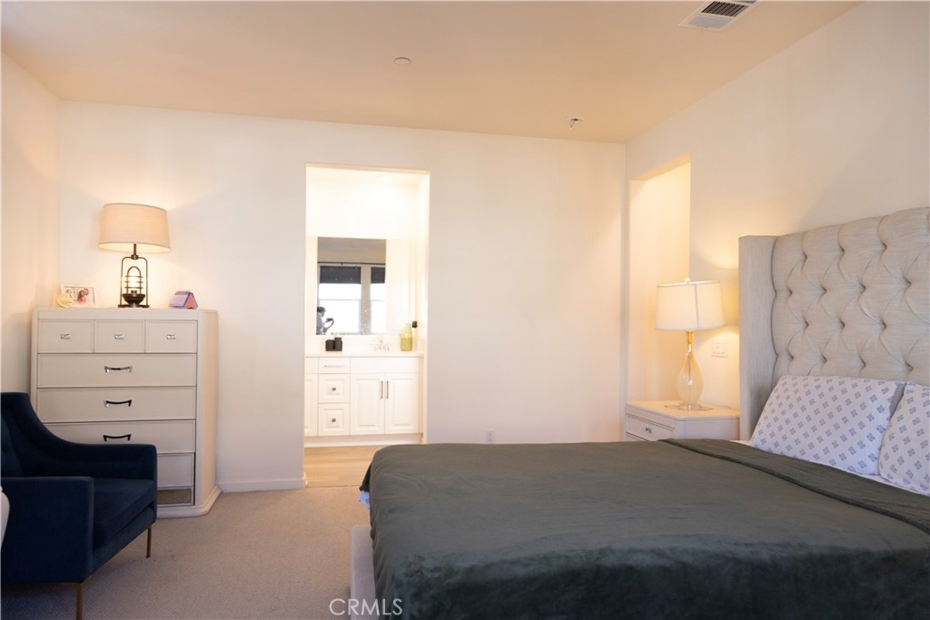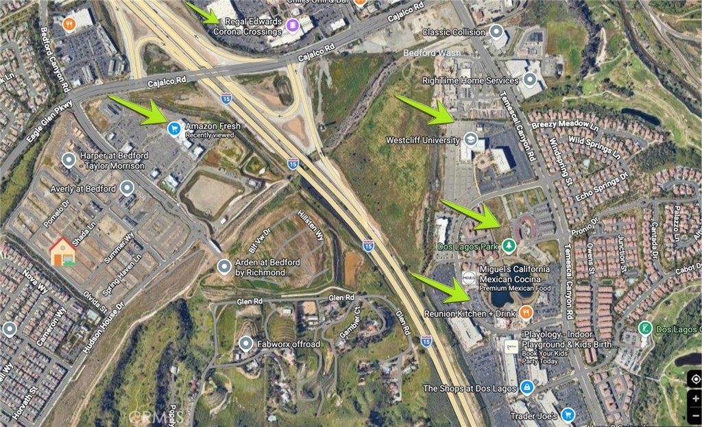**END UNIT - CORNER LOT** Welcome to this beautifully designed 3-bedroom, 2-bath carriage-style condominium located in the highly sought-after Bedford community by Beazer Homes in Corona. This Net Zero Ready home, certified by the U.S. Department of Energy, is designed to be approximately 40–50% more energy efficient than a typical new home. The residence is Energy Star Certified and includes EPA Indoor Air Plus Certification, providing enhanced indoor air quality, increased comfort, and long-term monthly energy savings. A structural warranty adds additional peace of mind. The home offers approximately 1,539 sq ft of thoughtfully planned living space, with all main living areas conveniently located on one level above a two-car attached garage. The open-concept floor plan is filled with natural light from 24 windows and features a spacious Great Room, a dedicated dining area, and a modern kitchen ideal for everyday living and entertaining. The kitchen offers ample cabinetry, a large center island, built-in water filtration system, and comes fully equipped with stainless steel appliances, including stove, microwave and dishwasher. An upstairs laundry room with natural light including washer, and dryer. A private front patio enhances the home’s livability, offering a welcoming outdoor space perfect for morning coffee, relaxing evenings, or entertaining guests. The primary suite is generously sized and features multiple windows, a large walk-in closet, and an ensuite bathroom with dual sinks and a walk-in shower. Two secondary bedrooms are located near a full bathroom, providing comfort and functionality. Additional highlights include leased solar, garage ceiling storage, and electric vehicle charging connection readiness. Residents enjoy access to resort-style community amenities, including three swimming pools, two clubhouses, a state-of-the-art fitness center, two dog parks, BBQ areas, walking trails, and playgrounds. The gated community spans over 50 acres of open space, designed for an active and connected lifestyle. Ideally located within walking distance to Amazon Fresh, Starbucks, Chase, urgent care, and childcare, and just minutes from shopping centers, the 15 freeway, and Corona elementary, middle, and high schools. This home offers the perfect blend of modern comfort, energy efficiency, convenience, and low-maintenance living in one of Corona’s premier master-planned communities.