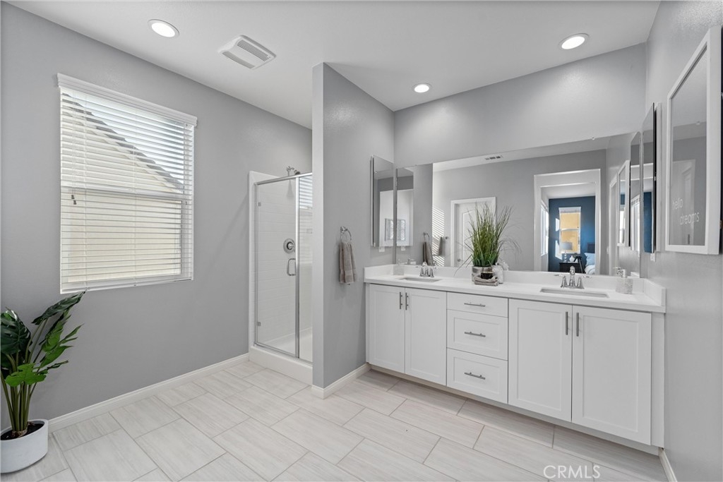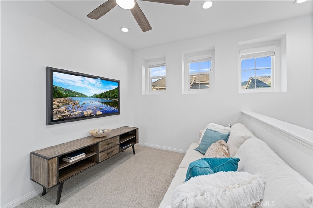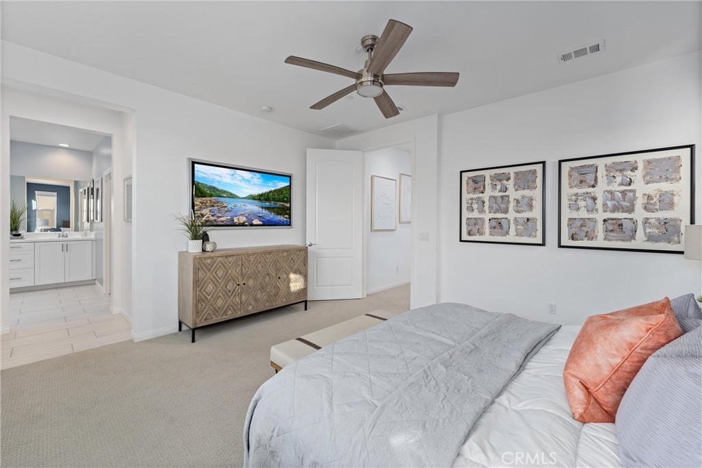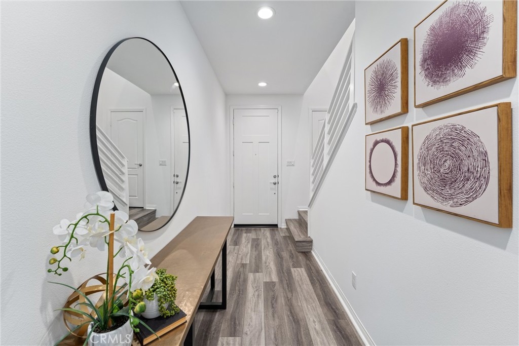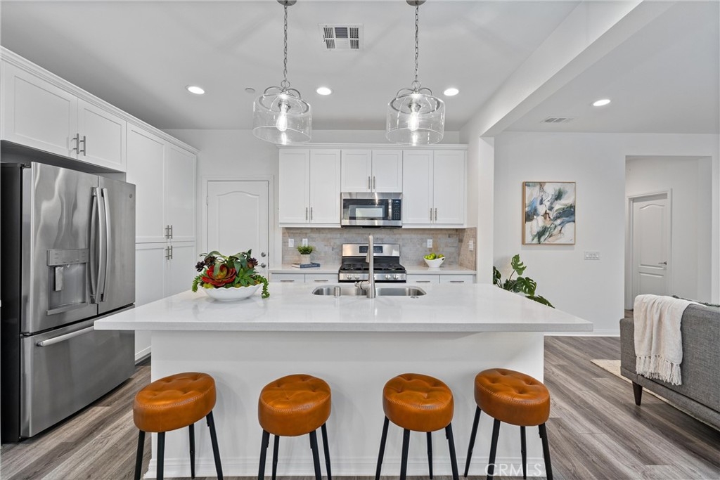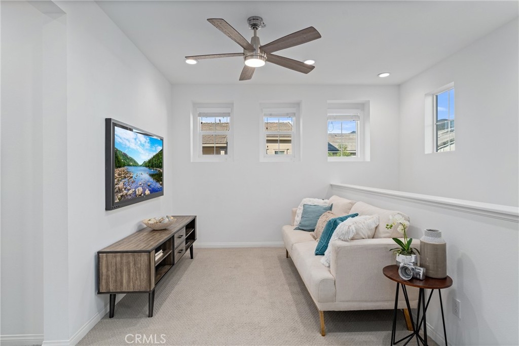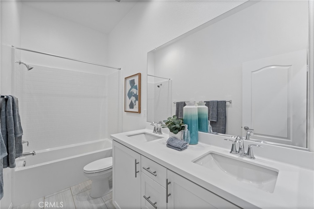Indulge in luxury living at 4233 Powell Way #103, a stunning contemporary farmhouse style home nestled within the new gated community of Bedford. Built only a few years ago, this fully detached turnkey home offers 3 bedrooms plus an upstairs Loft / Flex Space, and 2.5 bathrooms, all spread across 1,791 square feet. Through a formal Foyer and past a beautiful staircase lies the Great Room - which is truly the heart of the home. A large Family Room, Dining Space, open concept Kitchen, and access to the backyard create the perfect space to entertain. The chef's Kitchen is light and bright with crisp white cabinets, a central island with bar seating, stainless steel appliances, and upgrades that include quartz countertops, stacked stone backsplash, designer pendants to illuminate the space, and a cabinet and counter extension upgrade with open shelving for extra storage, prep and display space. Upgraded LVP flooring that exudes style and practicality can also be found throughout the main floor. A low maintenance backyard with paver patio, turf, and charming bistro lights creates the ideal space to relax outdoors. The main floor is complete with a powder room and direct access 2 car garage. Upstairs, a Loft / Flex space is the perfect spot for a family gathering room, office, or playroom. Two generously sized secondary bedrooms, a convenient upstairs Laundry Room, hall bathroom with dual vanities, and Primary Ensuite round out the upper level. The Primary Suite is a true oasis boasting a massive ensuite bathroom with dual vanities, walk-in shower, separate toilet room, and spacious walk-in closet - all adding to the luxurious and upgraded feel of the home. 4233 Powell Way #103 is located in the highly desirable new gated community of Bedford, where residents have access to enviable amenities including multiple pools and spas at the Hudson House, and the soon to be completed Shed. Hudson House includes a quiet pool, resort pool, children's pool, spas, BBQs, lawn games, and playground. The Shed will include pools including a saltwater pool, event lawn for movies, gym, dog wash, more dining spaces, and a yoga lawn - all for only $231/month HOA dues! The neighborhood is adjacent to a brand new shopping center with a new Starbucks and other shopping and dining options in addition to being a short drive from shopping, dining, and entertainment at Crossings at Corona and the Shops at Dos Lagos. This home will not last long! Call to schedule a tour today!