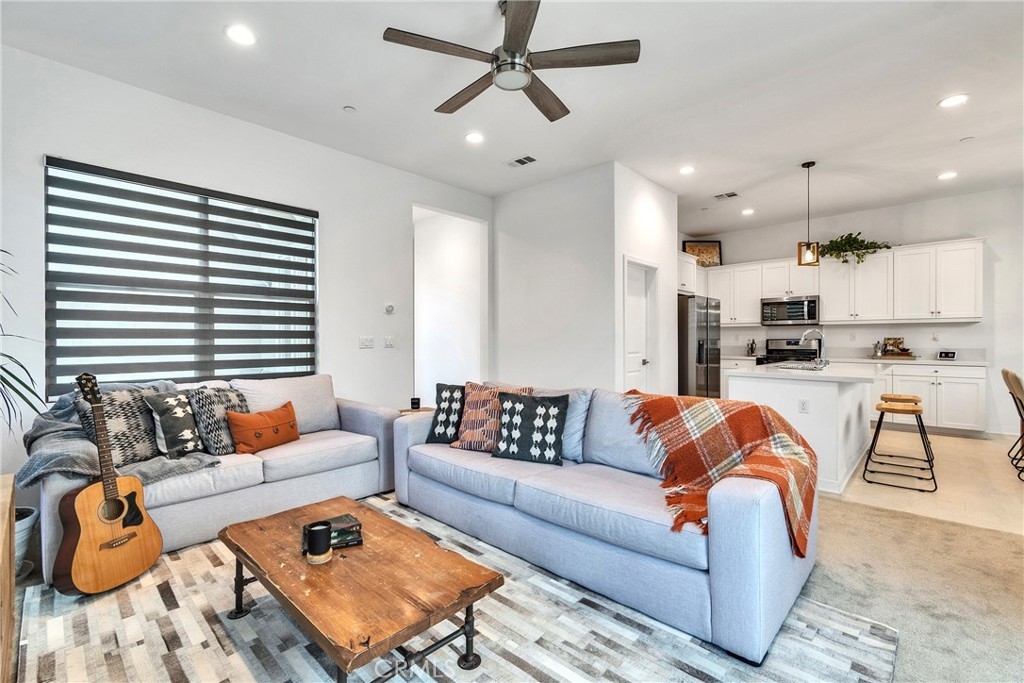 **TURNKEY & READY for MOVE-IN! Welcome to your dream home in the desirable Bedford Canyon community! Built in 2020, this stunning 3-bedroom, 3.5 bathroom condo offers 1,987 sq ft of stylish and functional living space. Each spacious bedroom features its own private en-suite bathroom and generouos closet, while a convenient half bath is located downstairs for guests. The modern kitchen is beautifully appointed with quartz countertops and a water filtration system at the sink, perfect for everyday living. High ceilings both upstairs and downstairs in an open floor plan create a bright, airy atmosphere that blends comfort with contemporary design. Step outside to a low-maintenance, landscaped backyard with a drip irrigation system, ideal for relaxing or entertaining. Located in a quiet, well-maintened neighborhood, residents enjoy an array of community amenities including sparkling swimming pools, cozy fire pits, barbecue areas, a playground, and scenic outdoor spaces, beautifully manicured, ideal for evening gatherings with family and friends. Additional features include two-one car garages with direct the condo. This home is situated in a prime location just off the 1-15 fwy, with convenient access to shopping and dining, including The Shops at Dos Lagos, Amazon Fresh grocery store, and top-rated schools in the Corona-Norco Unified School District. Only minutes away from the Eagle Glen Golf Course, experience the perfect balance of modern living, comfort, and convenience in this exceptional, highly sought out area in Bedford Canyon!!**