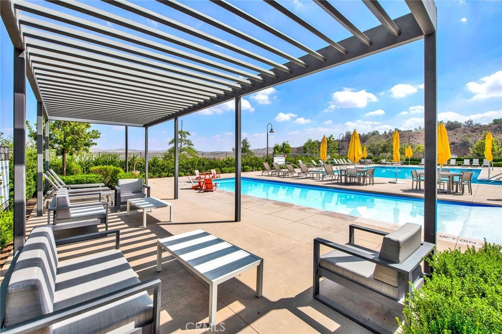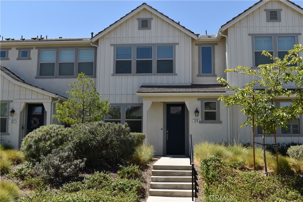 Looks and feels like brand new without the builder wait -Located just behind the gates at Citron offering the splendor of the Bedford community. This upscale and tasteful condo located at 4270 Horvath St. #109 provides an elevated lifestyle in one of Corona’s premier neighborhoods. Live easy & affordably in this high-performance smart home that includes Solar Photovoltaics, Energy-Efficient Appliances, Tankless Water Heater, Nest Thermostat & Doorbell, Eco-Efficient A/C, plus a whole house fan for those days when running the AC is just not necessary. This modern home offers 3 generously sized bedrooms & 2.5 bath rooms which includes a first-floor powder room. The unit boasts a quiet interior location, with several upgrades. As you enter the homes first level, you’ll immediately notice the high ceilings & large picturesque dual-paned windows that are punctuated by the recessed lighting that encompasses the living room, dining area and chef’s kitchen space. Kitchen upgrades include- granite countertops, white shaker cabinets, stainless steel appliances + refrigerator with a subtle pop of color from the subway tile backsplash which adds an allure of sophistication to this modern open concept kitchen. All walls in this home have been freshly painted a crisp white to show off the beautiful engineered wood flooring and brand new carpet. Upper level comprises of 3 bedrooms that expose a light and bright feel from each room. The primary suite has bench seating, custom walk-in closet, & ensuite, dual sinks, spacious shower & water closet with privacy door. The upper floor is finished off by 2 good size bedrooms located at the opposite end from the primary suite. An additional full-size bath offers Corian white countertops, tub/shower combo + upstairs laundry area with washer & dryer included. The garage is a rear facing true full size 2 car garage with additional storage for all your extras. The Citron-Bedford community offers resort style amenities with access to the Hudson House Clubhouse, Sidecar Bar, Multi-Purpose Room, Sunkist Lounge, Kiwi Corner Tot Lot, BBQ areas, three pools, 1-adult pool, 2-family pool, 3-kiddo's pool, plus a large spa, Clementine Park, Dog Park, and Bike Trails. Love to Golf? The Eagle Glen Golf course sits in the shadows of the Cleveland National Forest. Do you love to shop? Dos Lagos shopping and entertainment center features attractive retail and dining experiences. In essence, this is the perfect place to call home. Come on buy!