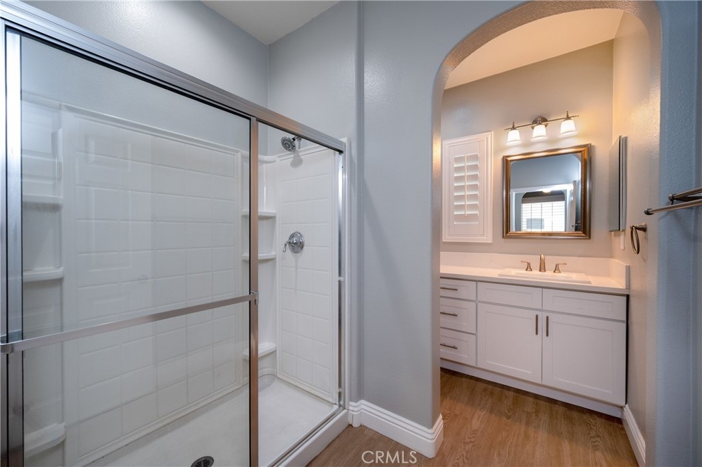 ATTRACTIVE NEW, PRICE! Welcome to this beautifully upgraded 1-bedroom, 2-bath home, offering 913 sq. ft. of stylish living space in the quiet and desirable Dos Lagos community. Built in 2006, this home is move-in ready and perfect for low-maintenance living without sacrificing comfort or luxury. Home Features Include: • Modern Kitchen with stained maple cabinets, granite countertops, stainless steel appliances, and under-cabinet accent lighting • New Luxury Vinyl Plank (LVT) Flooring throughout, fresh paint, and updated baseboards • Elegant Master Suite with a spacious walk-in closet and beautifully renovated bath featuring quartz counters and new soft-close cabinetry • Two Full Bathrooms for added convenience • Dedicated Laundry Room with additional storage • Stamped Concrete Patio is ideal for relaxing or entertaining outdoors • 1-Car Garage for secure parking and storage • Monitored the Fire Sprinkler System throughout the home for added peace of mind Located in a quiet, gated 55+ community with access to nearby shopping, dining, walking paths, golf, and entertainment—this home offers the lifestyle you've been looking for Unbeatable Location: Both homes are located just steps from Dos Lagos Golf Course, walking trails, shopping, dining, theaters, and the clubhouse. With quick access to the I-15 and nearby airports, Shady Grove offers the perfect blend of comfort, convenience, and community. Experience Resort-Style Living in Shady Grove at Dos Lagos – 55+ Gated Community Welcome to Shady Grove at Dos Lagos, Corona's best-kept secret for active adult living (55+)! This exclusive gated community of only 112 homes offers luxury, privacy, and everyday convenience in a resort-style setting. Gorgeous, upgraded, and ready for move-in!