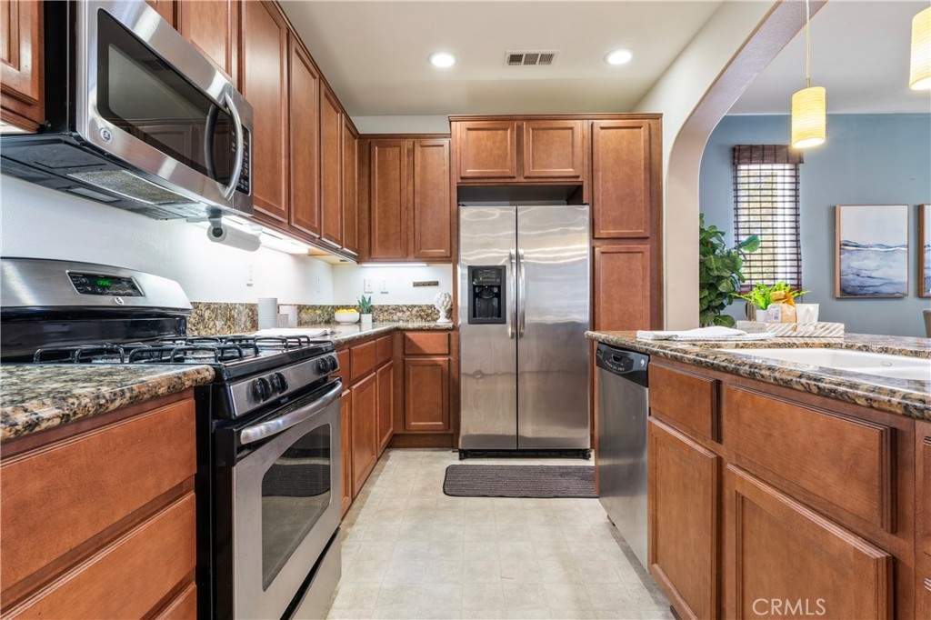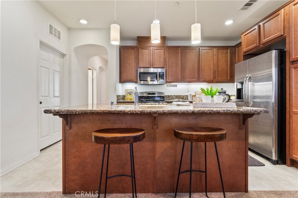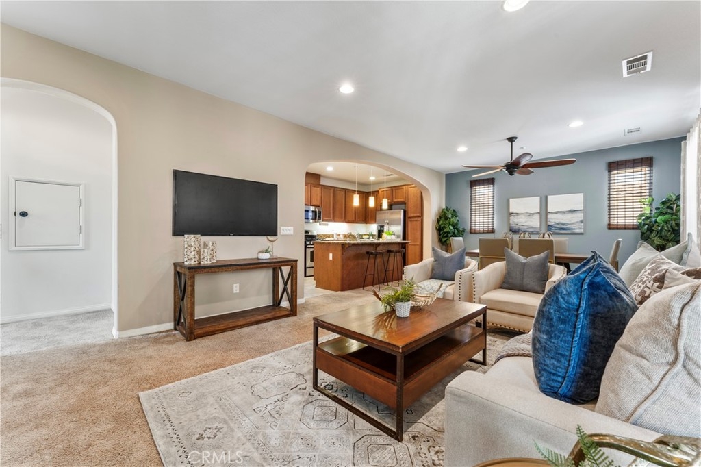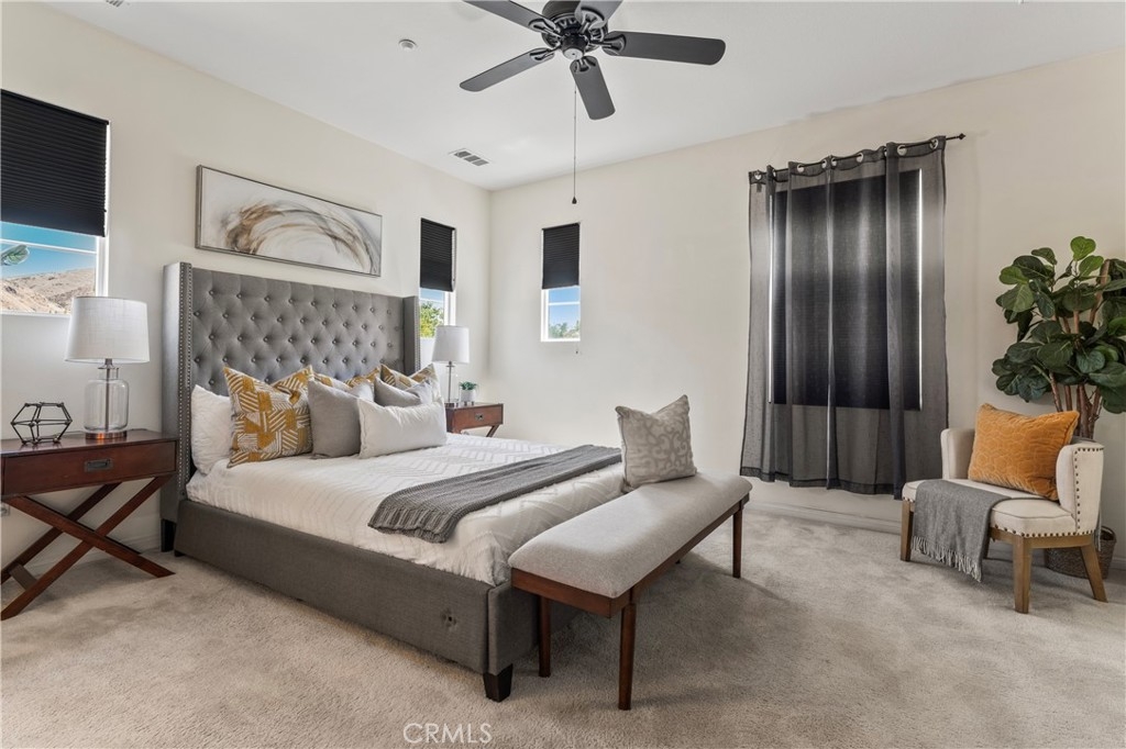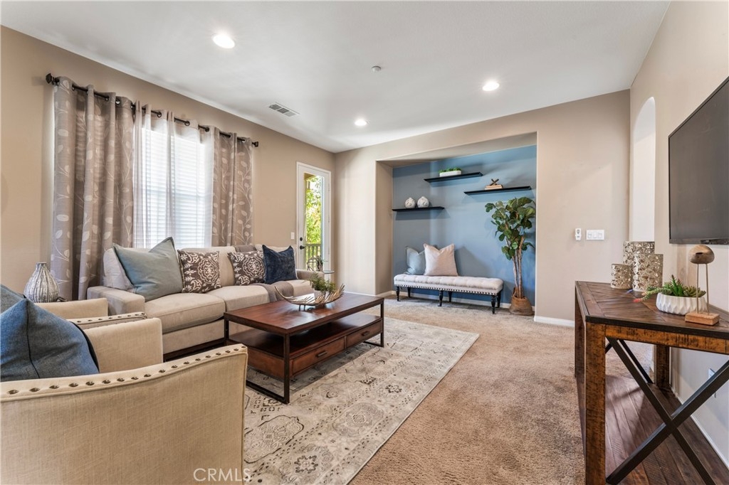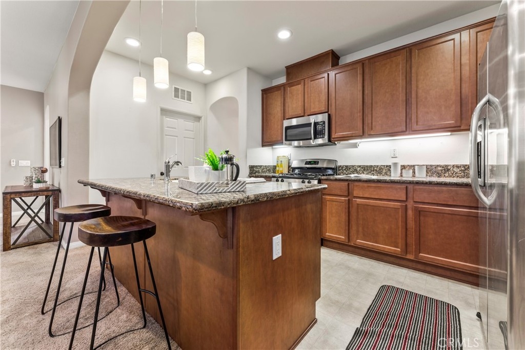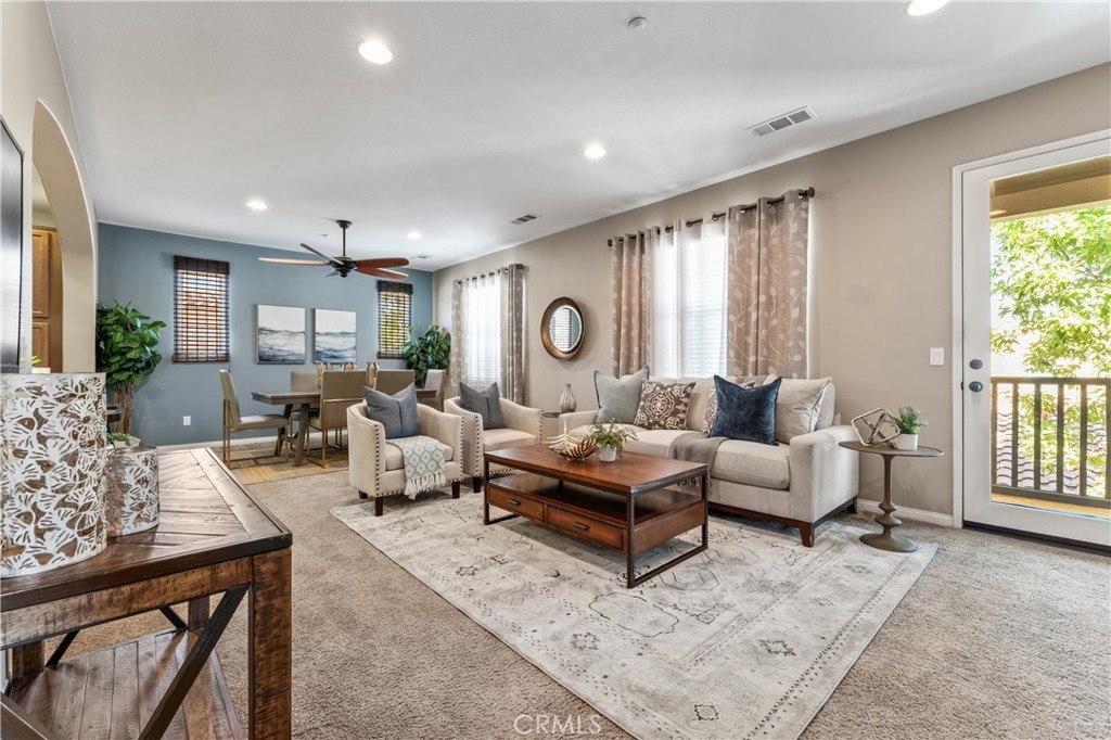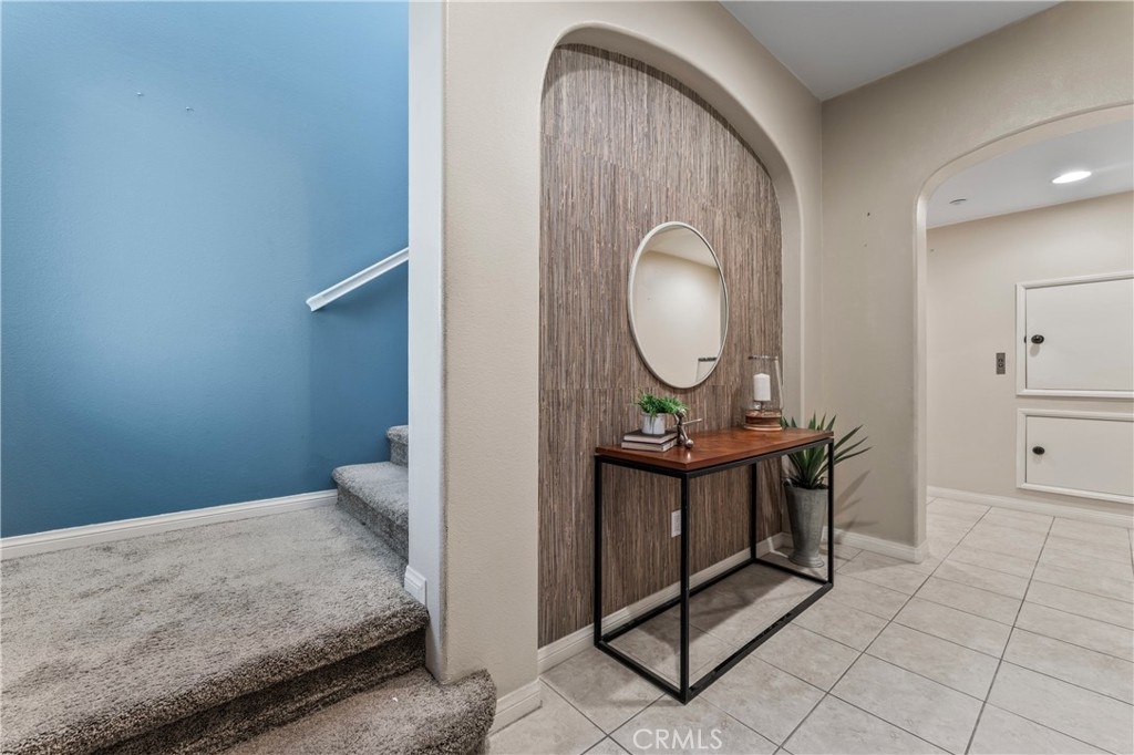 A great opportunity for this charming and well maintained home in the heart of Corona. Well located in the sought after 55+ gated community of Owen's Cove. A beautiful foyer greets you from main entry, leading to the 2 car garage. A portable "lift" adjacent to the garage door adds convenience in sending/ moving items up to the main floor. Upstairs features an open-concept design, creating a seamless flow between the living room, dining area, and kitchen, suited for entertaining and everyday living, for a perfect blend of modern comfort and classic style. A balcony is easily accessible from the living room, accommodating leisure moments. The well-appointed kitchen boasts contemporary appliances, ample cabinetries, granite counters, and a sink in island with modern drop down light fixtures. Both bedrooms are spacious, with walk in closets. Relax in the serene primary suite with a private bath. The dedicated laundry area upstairs and 2-car garage add convenience. Other features include fire sprinklers, a water softener system. HOA amenities include: pool and spa, club house and shaded gazebos. A vibrant community with easy access to local amenities and transportation routes. Near "The Shops at Dos Lagos" and "Crossings at Corona" with great dining, movie theatre, golf course, shopping, parks, man made lake and many more. Come visit and make this delightful home yours!