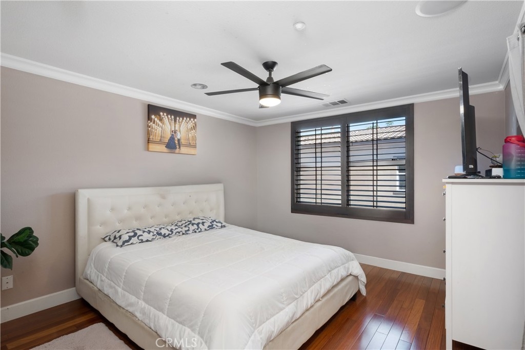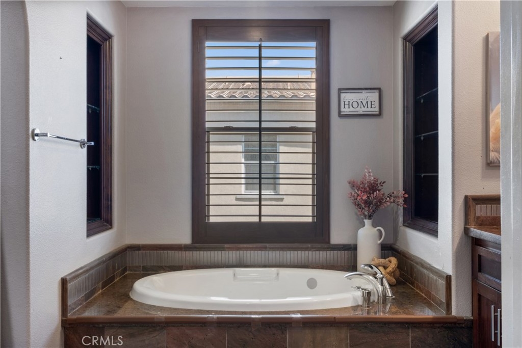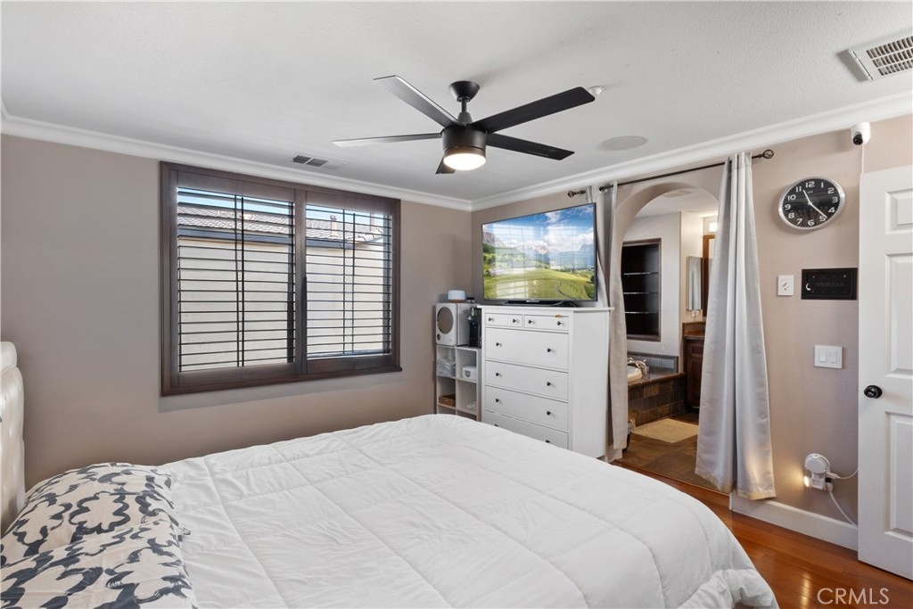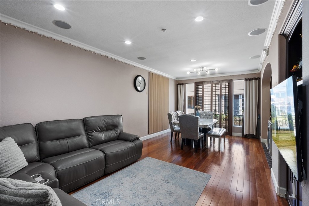 Step into the epitome of exclusive, gated Dos Lagos living with this beautifully upgraded 2 bedroom, 2.5 bath condo at 4429 Owens Dr, Unit #105. From the moment you enter, you’ll notice the elevated finishes—rich hardwood floors, plantation shutters, crown molding, upgraded lighting, built-in speaker system and custom wood built-ins that create a refined, high-end feel throughout the home. The modern kitchen is designed for both everyday use and entertaining, featuring shaker cabinetry, stylish backsplash, a spacious island with wine cooler, stainless steel appliances including a built-in refrigerator, and granite countertops. Elegant arches flow through the home leading you to the spacious living areas and private indoor laundry room. The primary suite feels like a Mediterranean spa retreat—complete with soaking tub, oversized walk-in shower with rainhead, extensive cabinetry, granite countertops and tasteful tile floors. The secondary bedroom has its own en-suite bath and a charming Rapunzel-style balcony. The attached 2-car garage is just as polished with epoxy flooring and an EV charger. This unit is one of the closest to the community pool with a convenient gate just steps away. The gated community itself offers a resort-style pool, clubhouse, and expansive park space. Living in Dos Lagos means enjoying so much more than a home — it’s a full lifestyle. You have the golf course right across the street and a vibrant shopping center featuring restaurants, movie theater, amphitheater events, Trader Joe’s, specialty markets like Claro’s Italian Market, art stores, boutiques, gyms, nail & hair salons, chess classes, jiu-jitsu, pediatric therapy, lakeside walking paths with waterfalls and ducks, and so much more — all just a short stroll away. Located in a top-rated school district with easy freeway access, this is truly one of the best places to live in Corona. Don’t miss your chance to make this incredible home and lifestyle yours — schedule your private tour today before it’s gone!