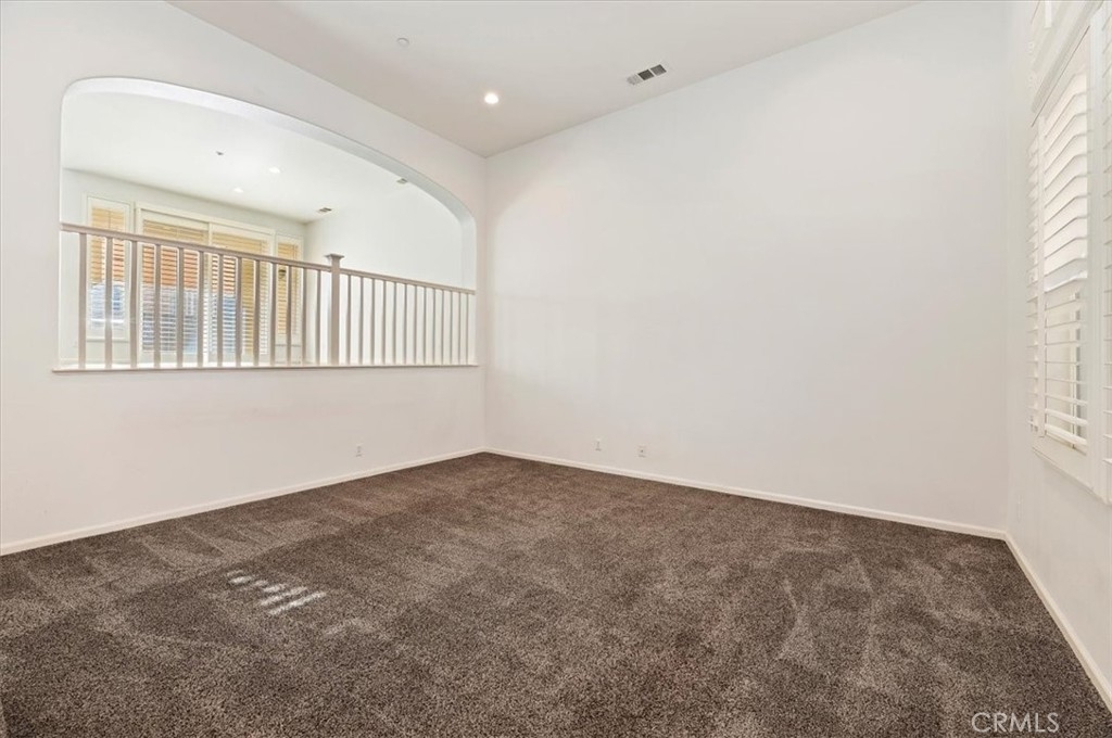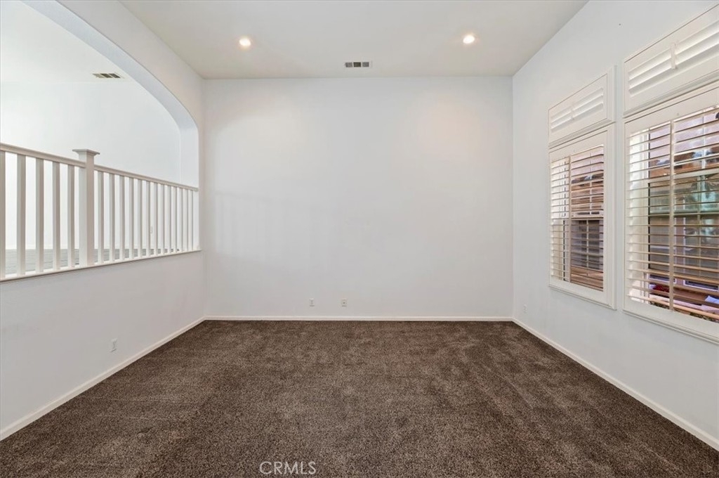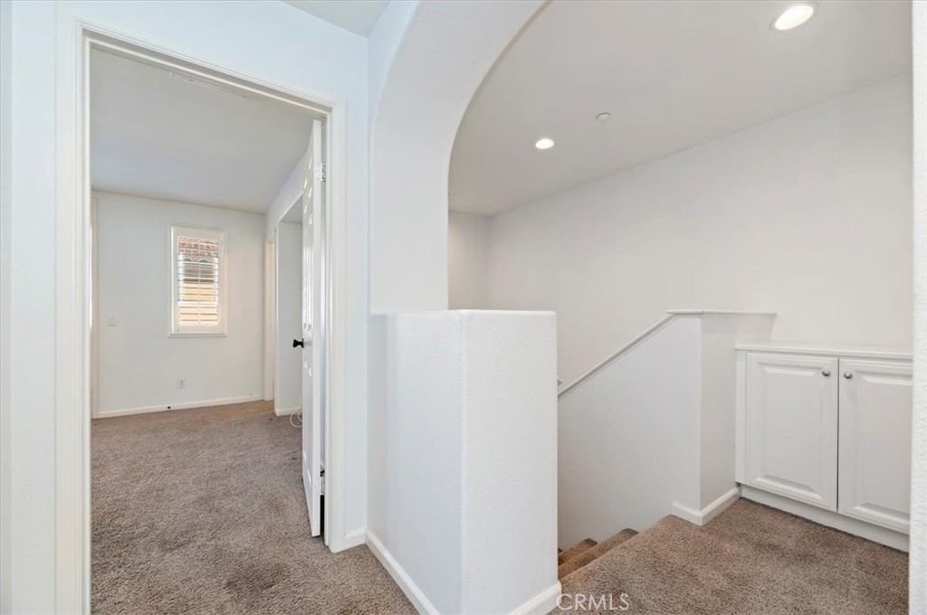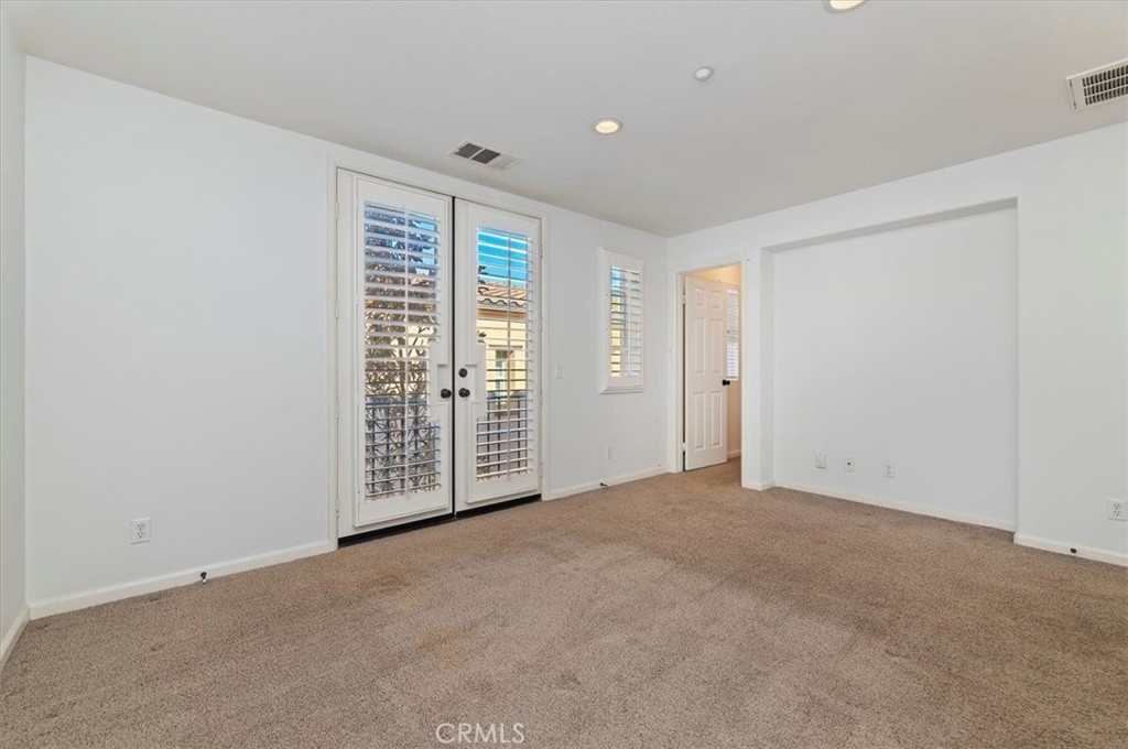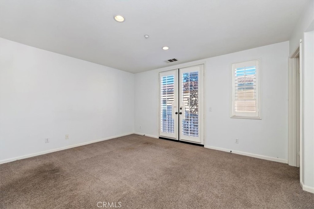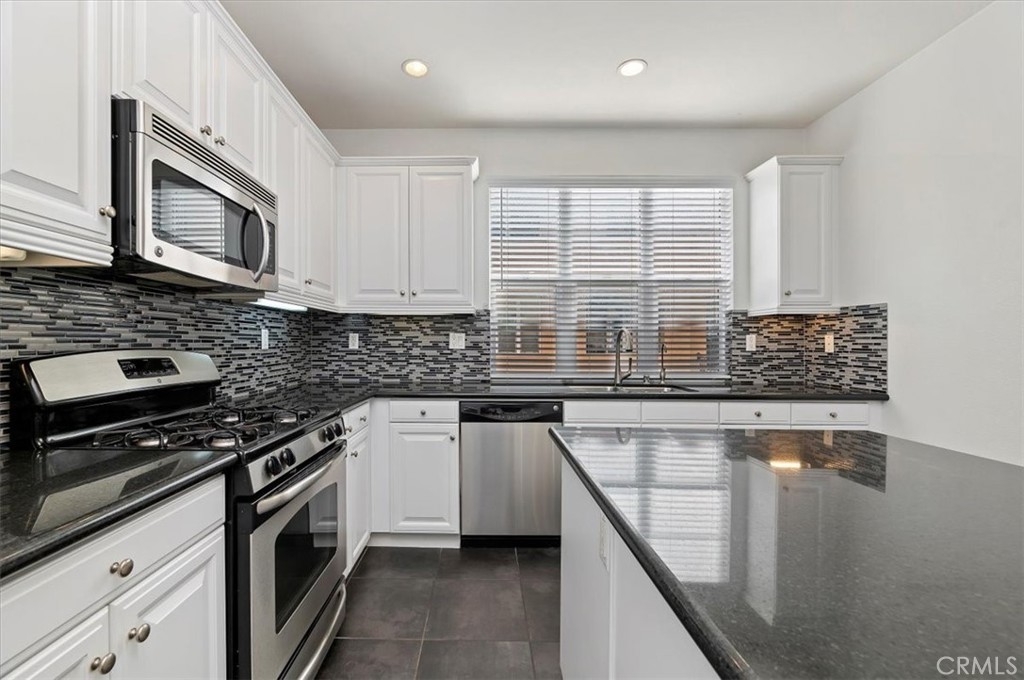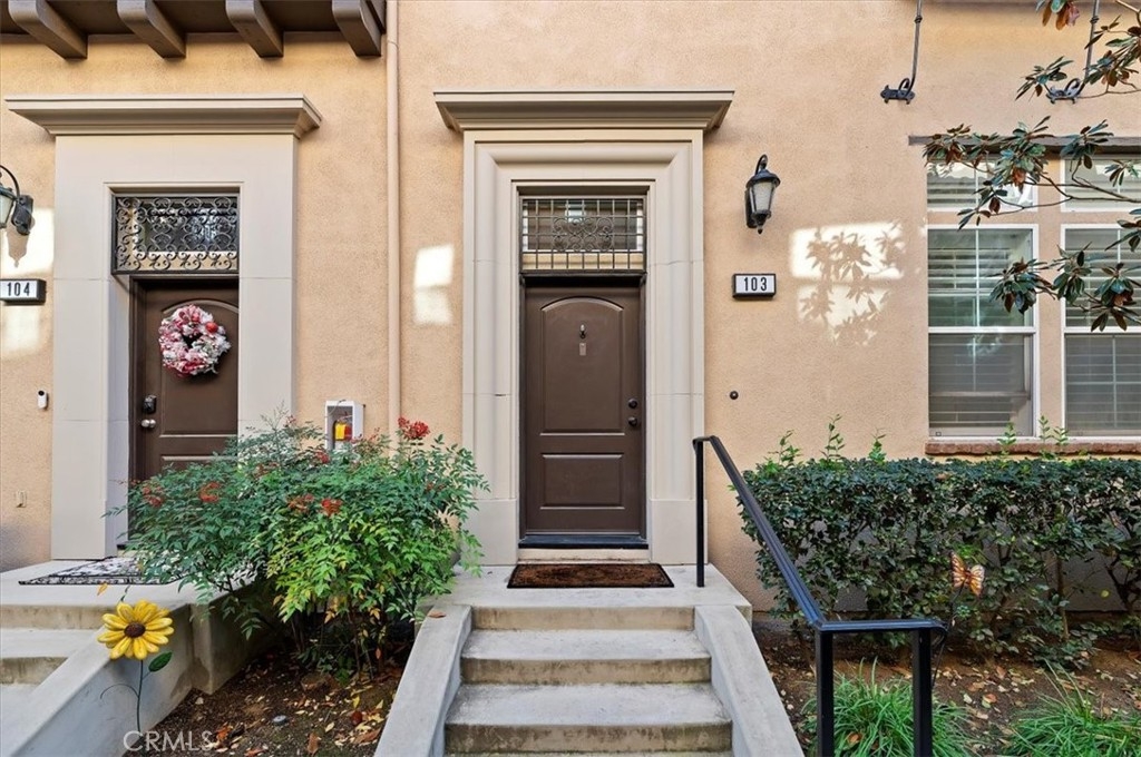 Enjoy the sought-after Dos Lagos lifestyle—just steps from shops, restaurants, theaters, nightlife, and summer concerts at the stadium. This beautiful home is located in an intimate gated community of only 125 residences, featuring a resort-style pool, spa, and cabanas. The gorgeous interior welcomes you with a dramatic entry and soaring 14-foot ceilings, leading to a step-down living room filled with natural light. The granite island kitchen is equipped with GE stainless steel appliances, white cabinetry, under-cabinet accent lighting, and a pantry. Plantation shutters, upgraded baseboards, a Nest thermostat, and a soft-water system add comfort and style throughout. Enjoy a cozy deck off the dining area, perfect for relaxing or entertaining. The primary suite features French doors opening to a charming Juliet balcony, a walk-in closet, and a private bath. Convenient upstairs laundry completes the thoughtful floor plan. Offering approximately 1,775 square feet of living space, this home includes three bedrooms, three bathrooms, was built in 2009, and features a two-car garage with an oversized storage area. Located within the desirable Santiago High School district. A fantastic home in an unbeatable location.