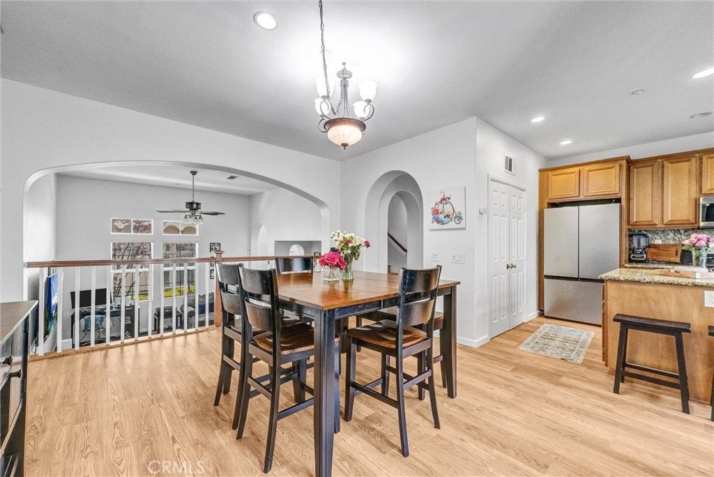 "Welcome to this stunning three-bedroom, 2.5-bathroom condo newly painted conveniently located across from the Dos Lagos shopping center." This home offers a perfect combination of convenience and comfort, providing easy access to upscale dining, entertainment, shopping, and golf courses. Upon entering, natural light fills the cozy family room, creating a welcoming ambiance. A small staircase leads to the dining area, seamlessly connecting to the kitchen with an open-concept design. The kitchen features a large island, pantry, gas range, microwave, and dishwasher, catering to those passionate about culinary delights. Moving up a flight of stairs, you will find all three bedrooms, with the primary bedroom boasting a generous walk-in closet. Additionally, the two-car garage provides extra storage space. The residence boasts beautiful amenities, including a pool and spa surrounded by palm trees, and a stunning clubhouse with an outdoor patio and umbrellas - perfect for gatherings with family and friends. This community is also known for its well-maintained landscaping and walking paths, which are ideal for strolls. With its proximity to top-rated schools and medical facilities, this condo offers a complete package for a comfortable and convenient lifestyle. Don't miss the opportunity to make this inviting space your home."