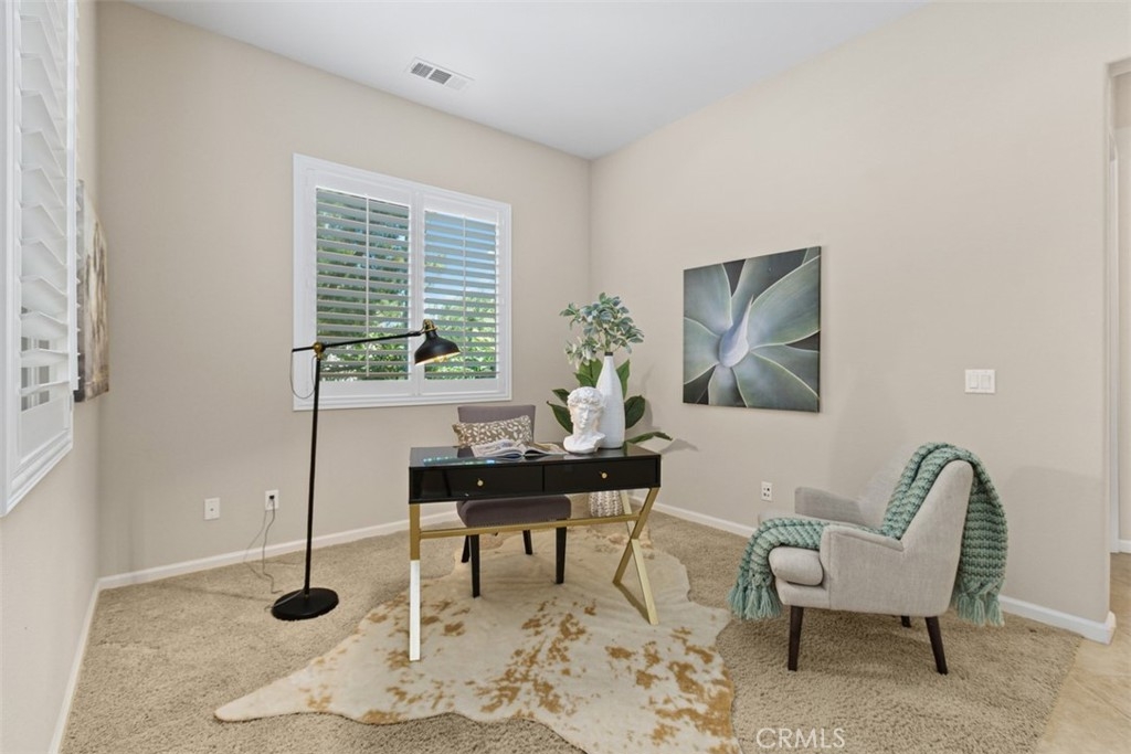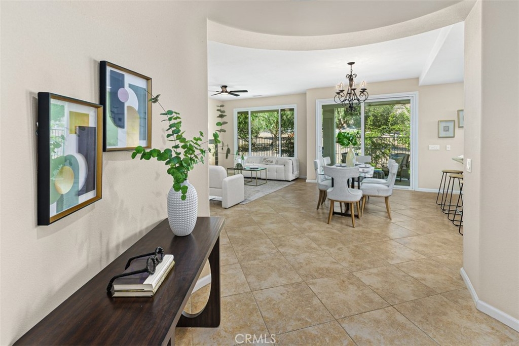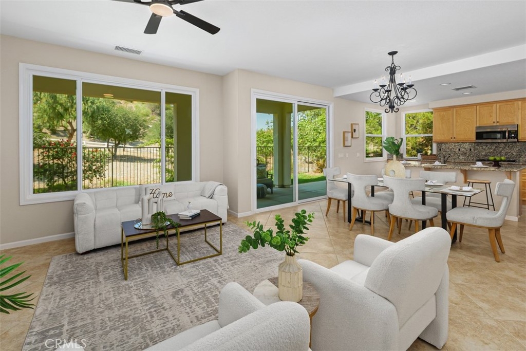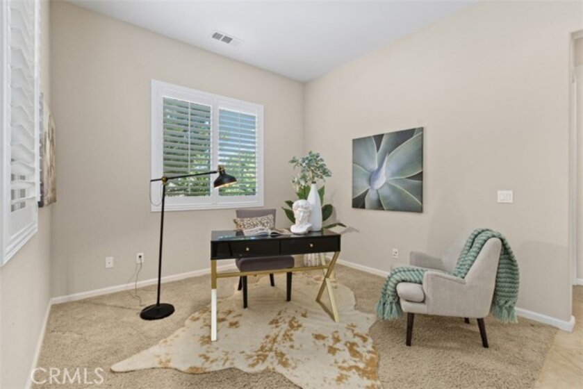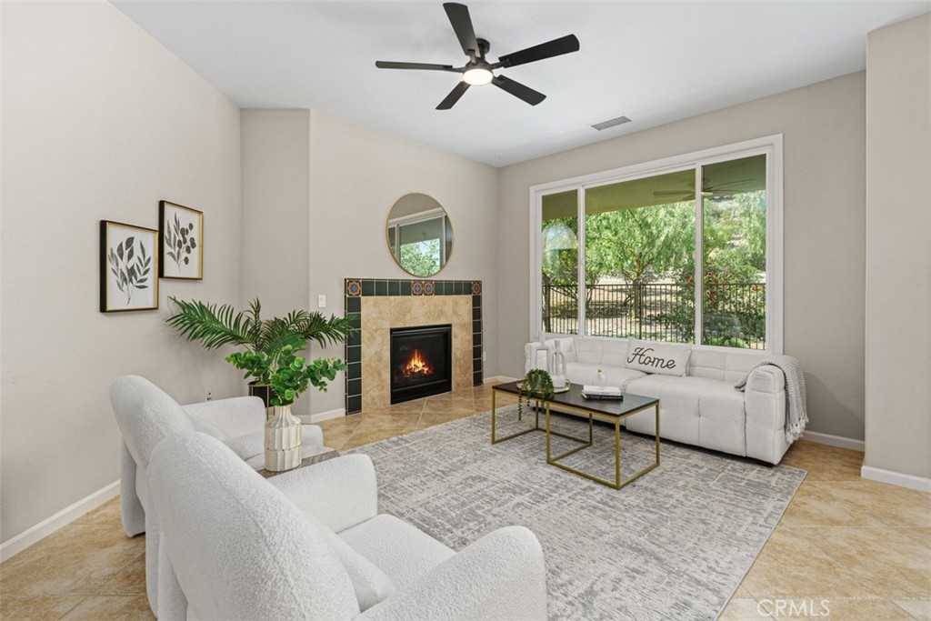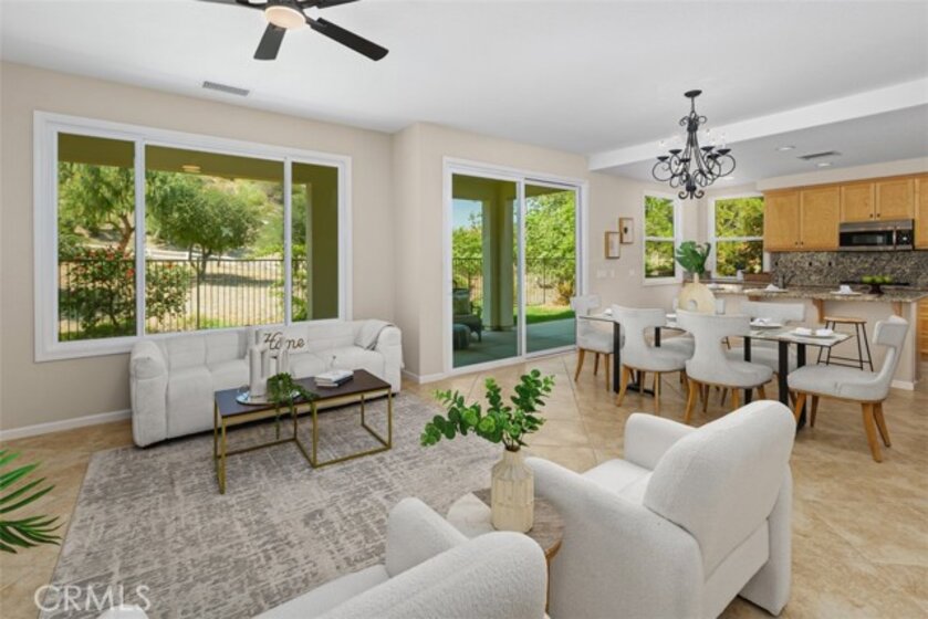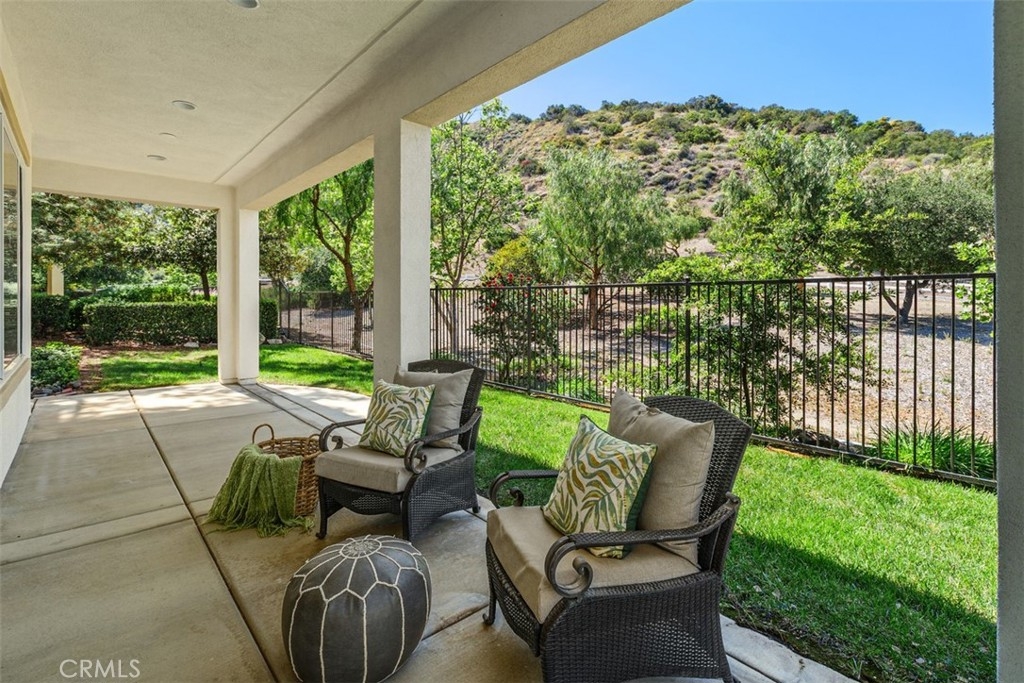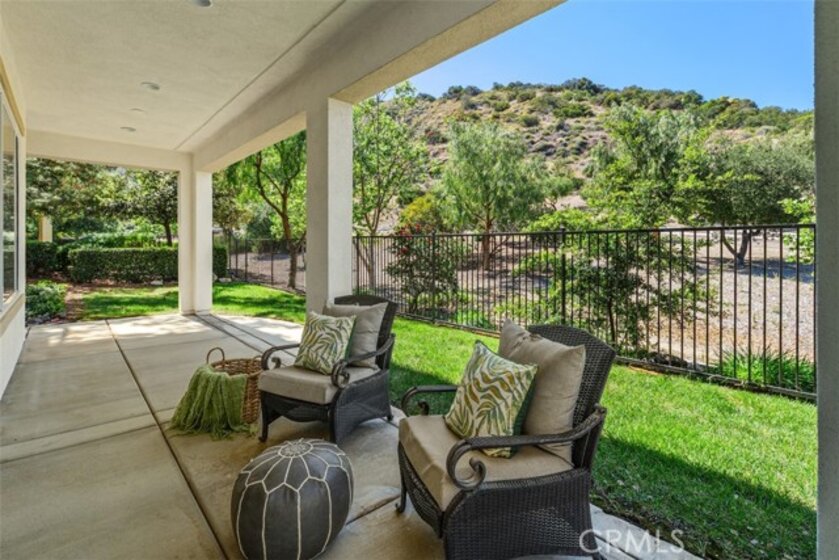 Nestled at the top of a cul-de-sac is the coveted San Juan floor plan. This Trilogy @ Glen Ivy condo is a favorite model and has peaceful, private views of the hills and Cleveland National Forest. Offering 1596 sq. ft. 2 Bedroom, 2 Bath plus a home office, den or 3rd bedroom! A popular rotunda entry gives a dramatic flair to this appealing, open plan. There is a large great room with fireplace off the kitchen which opens onto the dining room and convenient breakfast bar. Plenty of windows allow for natural light to fill the home. The private den and guest room, plus full bath, make this an ideal home for the welcomed guest. Plus the den offers you the flexibility of an additional space to create a room that fits your lifestyle. The master suite, with its formal coffered ceiling, large shower and spacious walk-in closet, will become your favorite hideaway. Most windows are trimmed with wood moulding. The large covered patio extends the flow of the living areas to the outdoors so you can take advantage of the wonderful Southern California Climate! You will enjoy spending time with family and friends in this exceptional backyard oasis with views of the hills and nature. The tandem 2 car attached garage offers an ideal storage or work shop area which you will find useful. New water heater recently installed in this turnkey home. Directly across the street is a lovely park which is the gathering place for many social activities within the condo community or could be your private park! Fabulous community amenities include: 2 pools (one indoor) spa, fireplace, cabanas, BBQ's, fitness center with walking track and exercise classes. Recently refurbished Lodge and ballroom which is the hub of activities. Large Amphitheatre for summer concerts under the stars! 4 tennis courts, pickle ball, bocce ball, cards, billiards room, dances, dinners, ceramics, painting, glass fusion, a travel club, wine clubs, complimentary WI-FI and much more! Life begins at 55 !!!