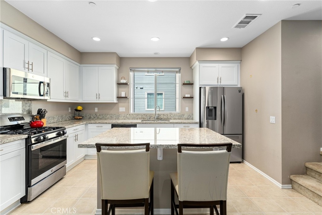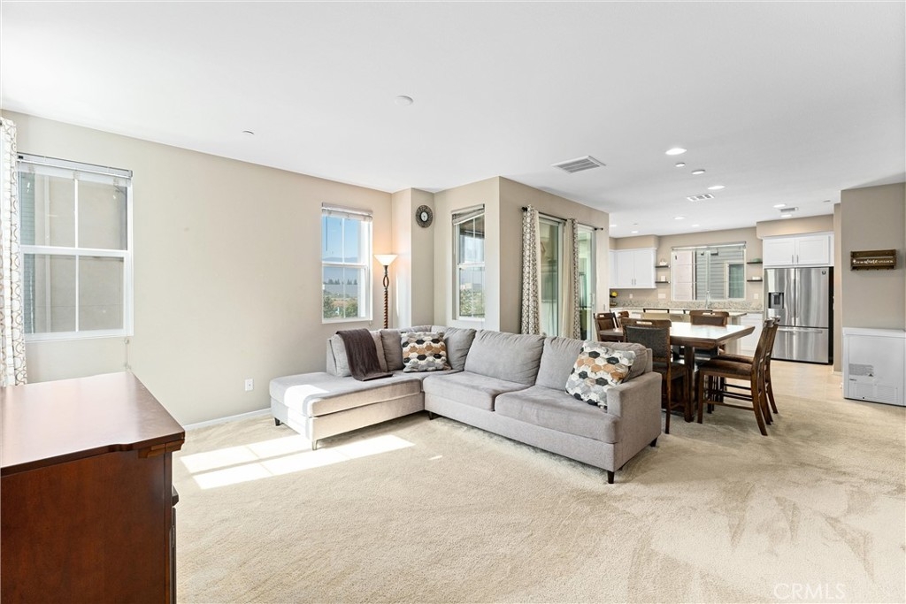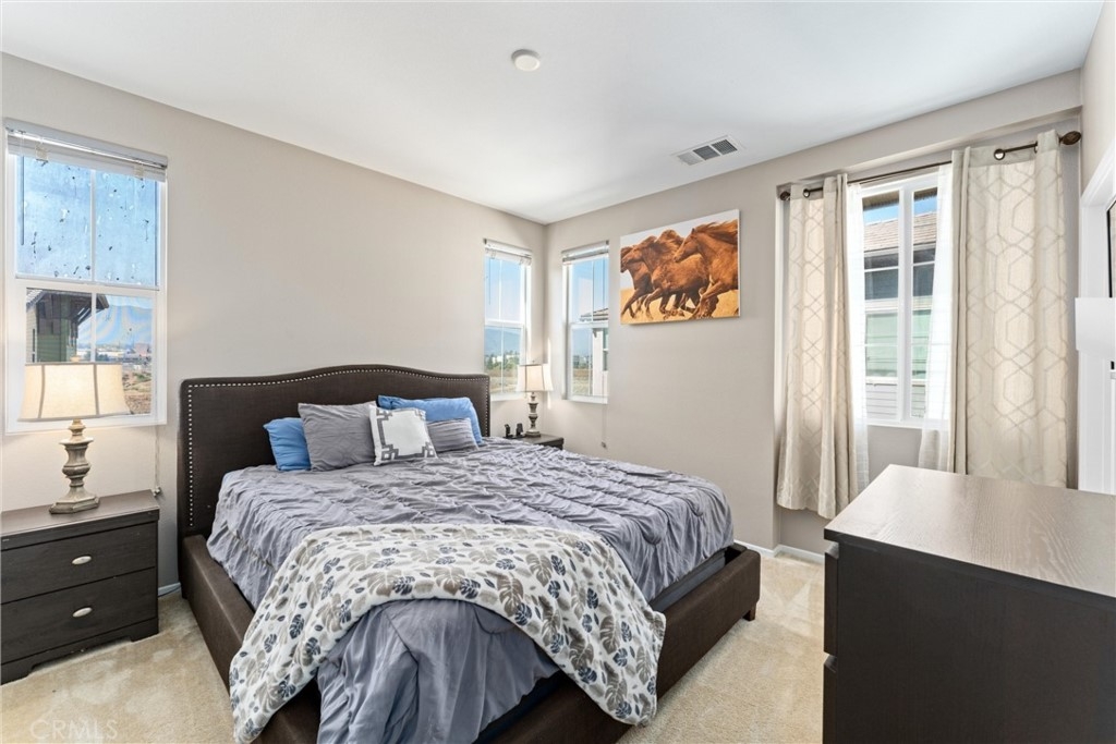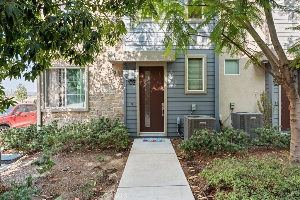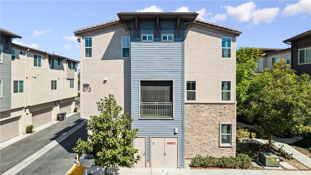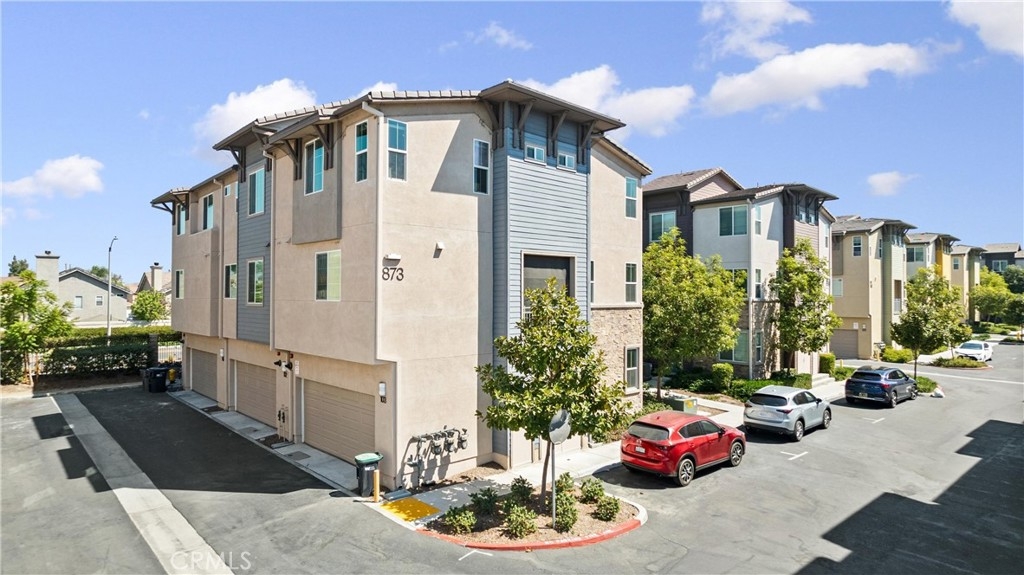 Welcome to your new dream home in the desirable Boardwalk Townhomes community. This stunning tri-level townhome offers the perfect blend of modern design and functional living, boasting 4 bedrooms and 3.5 bathrooms. Step inside to find a convenient first-floor bedroom with walk-in closet and full bathroom, perfect for guests, home office, and so much more. The attached 2-car garage provides a tankless water heater, ample storage and easy access to your living space. The garage has also been thoughtfully upgraded with improved air and heat flow through the ductwork, providing a comfortable environment year-round, and is enhanced with a pull-down shade screen for added convenience and style. As you go up to the second floor, you’ll be greeted by a spacious open-concept family room, dining area, half bathroom, and modern kitchen featuring stainless steel appliances and elegant granite countertops, making it a chef’s delight. You can also enjoy your private balcony full of natural light. The third floor features two additional bedrooms, a full bathroom, and a laundry room for your convenience. Retreat to the primary suite, complete with a private bathroom and generous walk-in closet, offering both comfort and privacy. The Boardwalk Townhomes community enhances your lifestyle with a refreshing pool and spa, BBQ areas just steps away from your front door, and secure gated access, with low HOA fees. Conveniently located near shopping centers, schools, parks, and easy freeway access, this is your chance to own a beautiful home in Corona, California!!