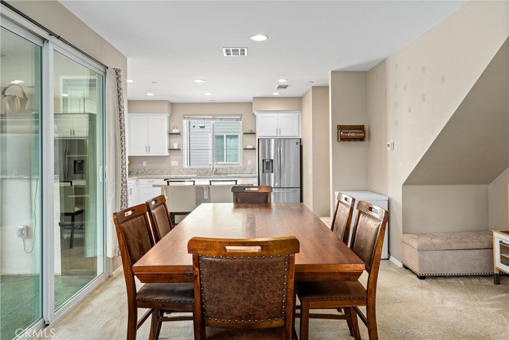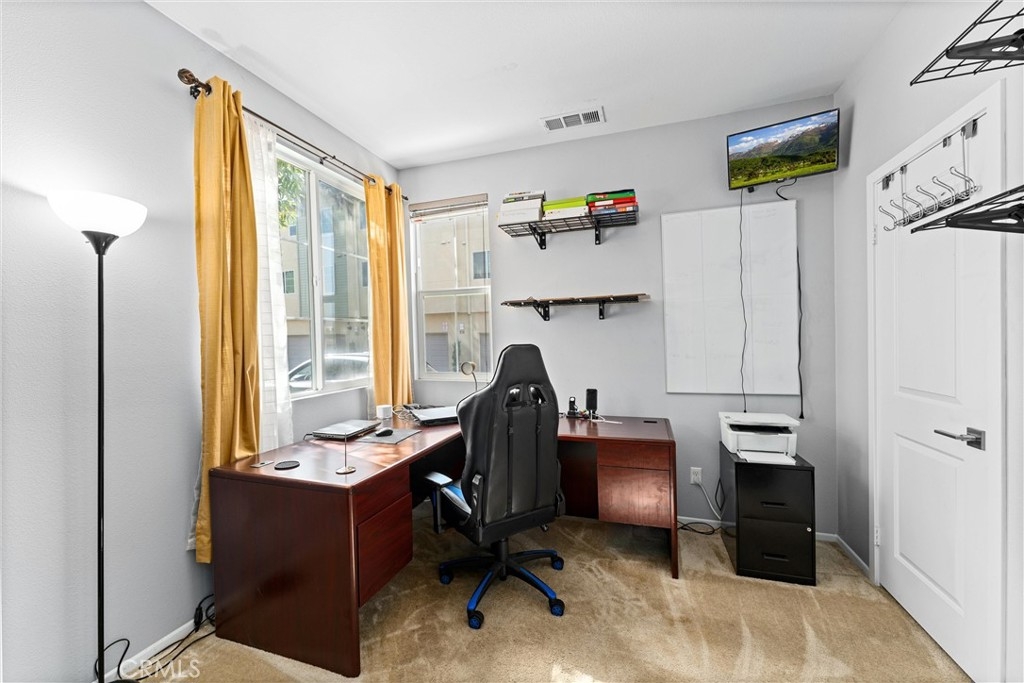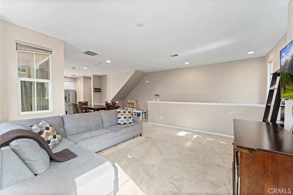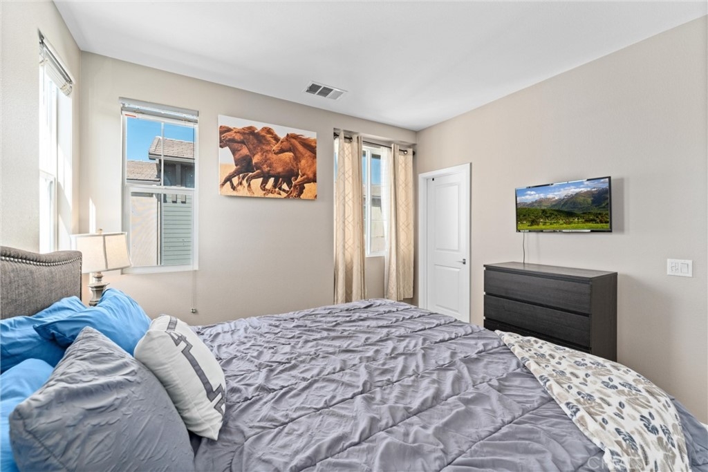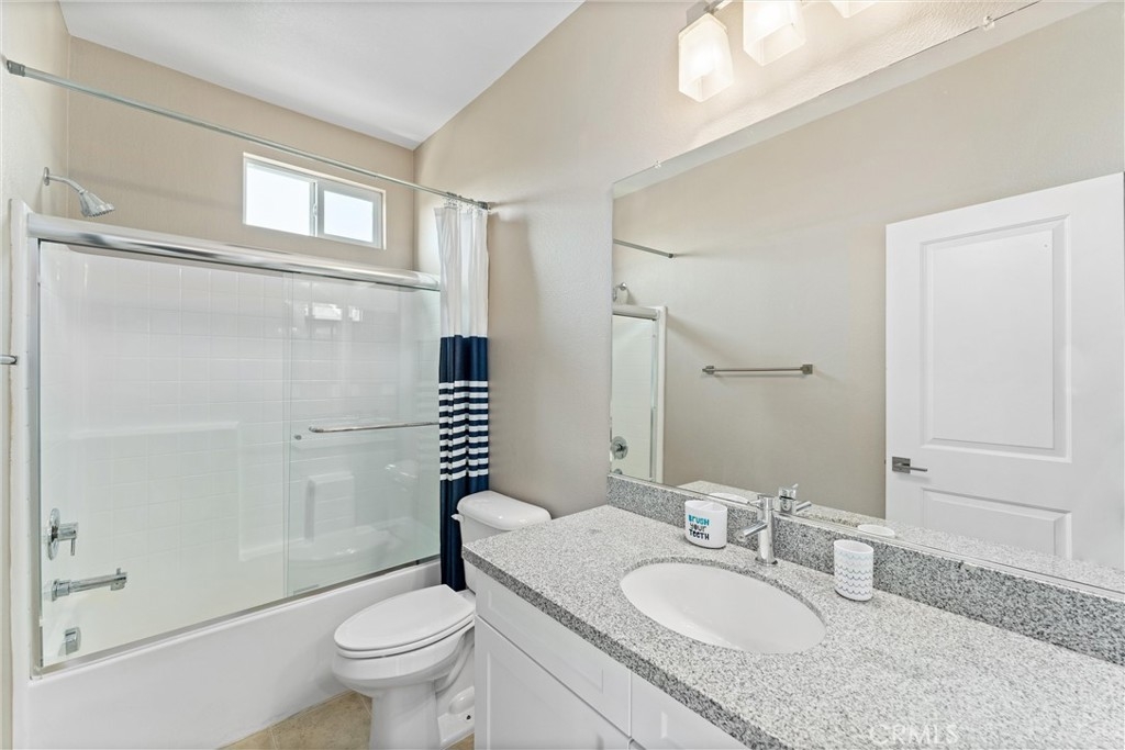 Welcome to your new dream home in the desirable Boardwalk Townhomes community. This stunning tri-level townhome offers the perfect blend of modern design and functional living, boasting 4 bedrooms and 3.5 bathrooms. Step inside to find a convenient first-floor bedroom with walk-in closet and full bathroom, perfect for guests, home office, and so much more. The attached 2-car garage provides a tankless water heater, ample storage and easy access to your living space. The garage has also been thoughtfully upgraded with improved air and heat flow through the ductwork, providing a comfortable environment year-round, and is enhanced with a pull-down shade screen for added convenience and style. As you go up to the second floor, you’ll be greeted by a spacious open-concept family room, dining area, half bathroom, and modern kitchen featuring stainless steel appliances and elegant granite countertops, making it a chef’s delight. You can also enjoy your private balcony full of natural light. The third floor features two additional bedrooms, a full bathroom, and a laundry room for your convenience. Retreat to the primary suite, complete with a private bathroom and generous walk-in closet, offering both comfort and privacy. The Boardwalk Townhomes community enhances your lifestyle with a refreshing pool and spa, BBQ areas just steps away from your front door, and secure gated access, with low HOA fees. Conveniently located near shopping centers, schools, parks, and easy freeway access, this is your chance to own a beautiful home in Corona, California!!