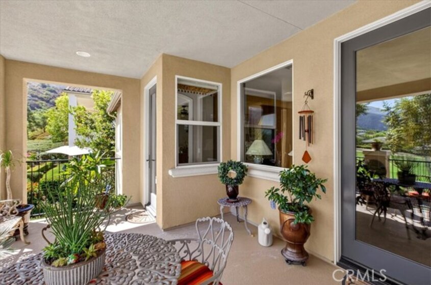 Choose living here in Trilogy at Glen Ivy, one of So. Cal's most sought after Active 55+ Community. If you are not sure what that means..? It's a resort lifestyle that offers something for everyone. So start with this lovely Condo located on the Golf Course side of the street with endless views. Use the elevator or navigate the stairs up to the single level large unit. The views are simply amazing, reach out and touch the Cleveland Forest! Or lounge on the private deck marveling at the flawlessly-manicured fairways, watching the Golfers make their putts. So serene and relaxing listening to nature and the breezes flowing through the trees. You won't be disappointed as you walk off the deck into this pristine home, with all the amenities you want/need in a home. Oversized kitchen with granite counters, sitting bar and dining room. For those chilly nights, enjoy the glow and warmth of the fireplace in the LV RM off of the kitchen all while enjoying the outdoor views. Large master BD RM & BATH with walk in closet. Guest room and secondary bathroom available, plus an office/loft and a front sitting/reading/relaxing/visiting/room. Of course Trilogy has PickleBall, a GYM, walking track, in-door/out-door pool, spa, BBQ area, Bocce Ball, Tennis, Billiards and a Shuffle Board to name a few. Like to play cards? The games are here!! So much more to list.....come see for yourself!