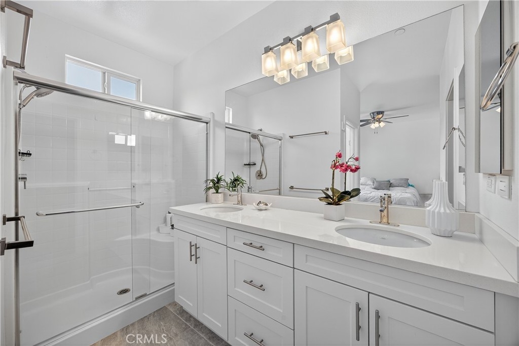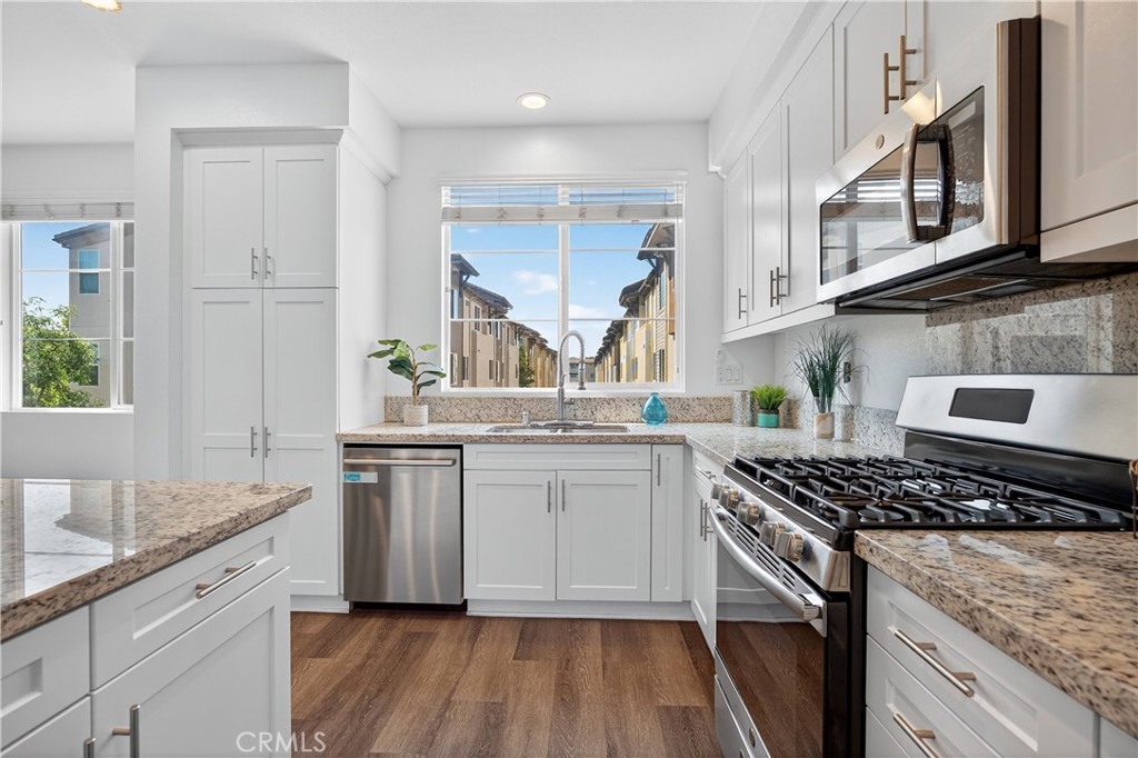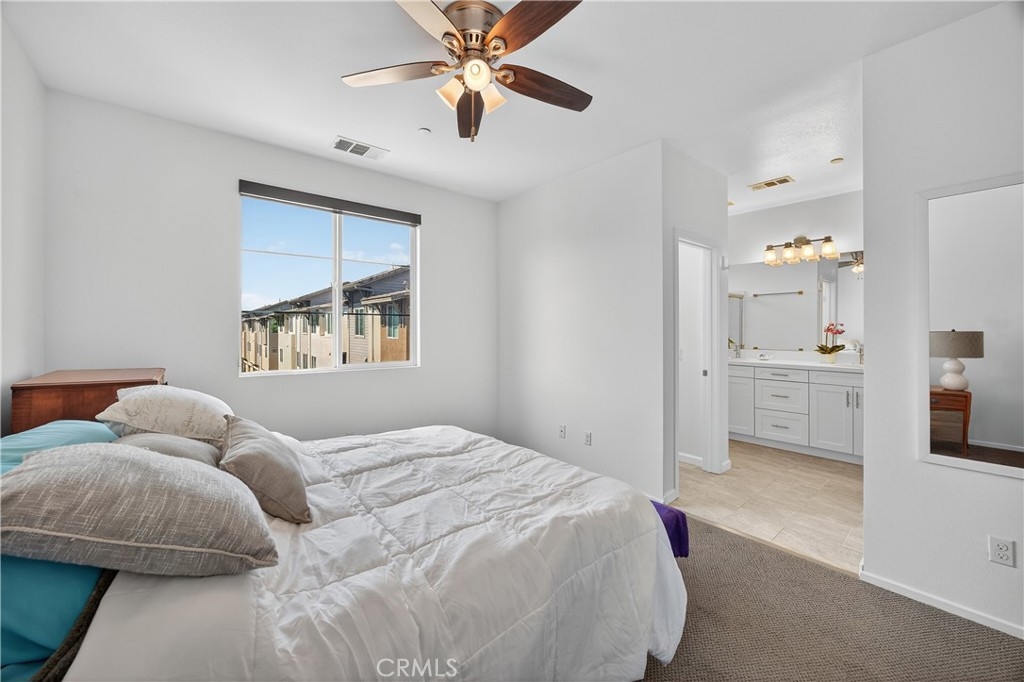 Welcome to this beautifully designed tri-level 3-bedroom, 3.5-bathroom home in one of the Corona’s most desirable gated communities. Featuring beautiful upgrades, a flexible floor plan, and a prime location near major freeways and top-rated schools. The first level features a private bedroom with a full bath and direct access to the 2-car garage. This space is ideal for a home office, guest suite, or a home business, offering privacy and functionality away from the main living areas. On the second level, you’ll find the heart of the home. The upgraded kitchen boasts granite countertops, pull-out shelving, custom cabinetry, and a bright breakfast nook. It opens seamlessly into the living room, creating a welcoming open-concept space for both entertaining and daily living. From here, step out onto the balcony for fresh air and a touch of outdoor living. A convenient powder room completes this level. The top floor is dedicated to two spacious primary bedrooms, each with its own en-suite bathroom. This rare setup ensures everyone enjoys privacy and comfort. Throughout the home, all bathrooms have been tastefully upgraded to reflect modern style. Additional highlights include a dedicated laundry room with built-in shelving and included washer and dryer, plus a tankless water heater for energy efficiency. The community itself is secure and gated, includes a community pool, low HOA fees and low taxes, adding to the home’s long-term value. Its location is a commuter’s dream, situated near the 91, 71, and 241 freeways while remaining part of a highly regarded school district. Perfect for multi-generational living, remote work, or anyone seeking a versatile and stylish home, this tri-level property is move-in ready and designed to fit today’s lifestyle.