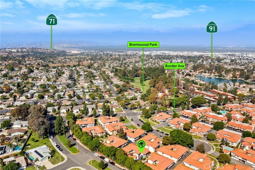 Welcome to 1336 Brentwood Circle in Corona! This beautifully updated 2-bedroom, 2-bath home offers 1,095 sq ft. of comfortable living space in a desirable community close to everything. Step inside to find a bright and open layout featuring gray laminate flooring, neutral paint tones, and modern finishes throughout. The kitchen is appointed with granite countertops, stainless steel appliances, and plenty of cabinet space for everyday cooking or entertaining. It has central air and heat. The spacious primary suite includes a walk-in closet and private bath, while the second bedroom provides excellent flexibility for guests or a home office, patio for barbeques with family and friends. Enjoy access to the community pool, well-maintained grounds, and a convenient on-site laundry facility, where buyers can have their own washer and dryer directly downstairs from the unit. It has two parking spaces that lead directly up the stairs to the unit. Close to shopping, dining, parks, and easy freeway access, this home combines comfort, style, and convenience in one perfect package.